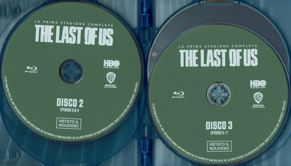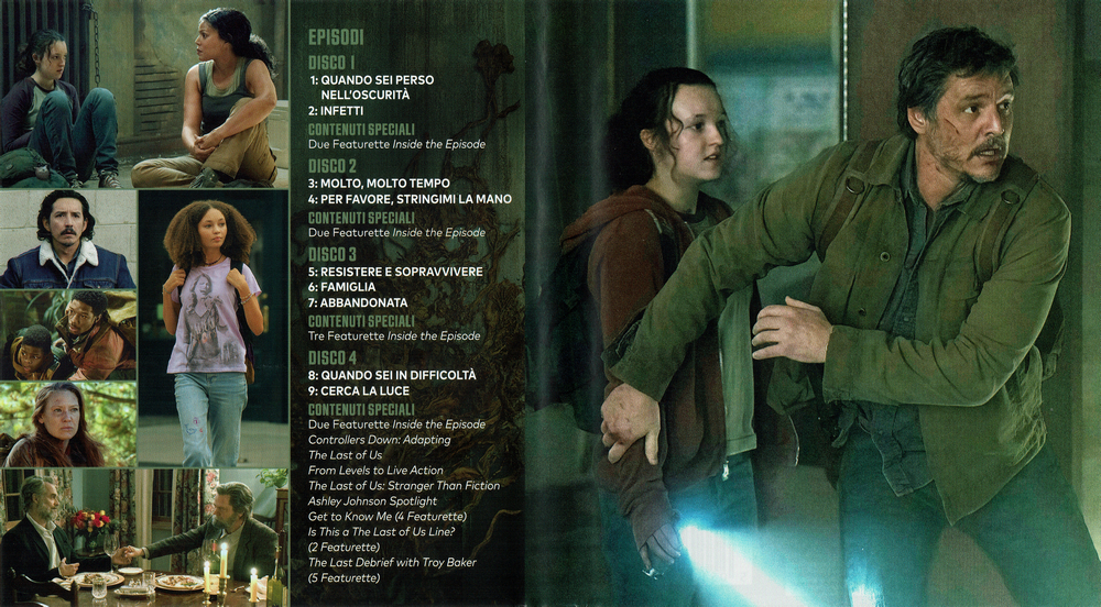The Last of Us (La prima stagione completa) auf vier Discs in einem Keep Case. Die Serie hat in Italien die Freigabe MIC 6+. Der Innendruck des Covers besteht aus einer Episodenliste und einigen Szenenbildern.