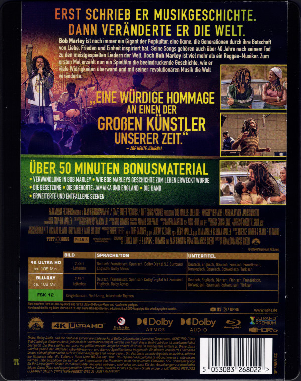 *Der Spielfilm endet bei 96:25 Minuten. Danach folgen Informationen zu seinem Werdegang und Tod, sowie einige Archivaufnahmen seiner Auftritte. Unterlegt sind diese mit seinem Song ,,One Love''.