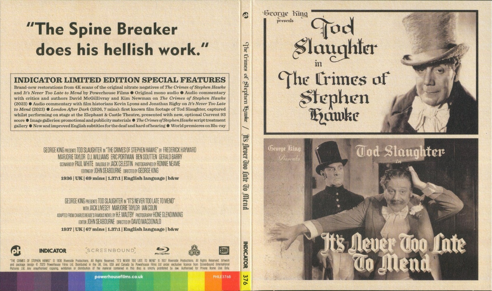 Unlike his contemporaries, such as Boris Karloff and Charles Laughton, Tod Slaughter never left his native shores. Instead, he chose to make his mark in Britain by transferring his most sensational theatrical performances to the screen. Portraying every kind of cruel and cunning criminal – from petty thief to mass murderer – he became the first great villain of British horror, at a time before the Grand Guignol of Hammer Films began to take hold, without once donning monster make-up.