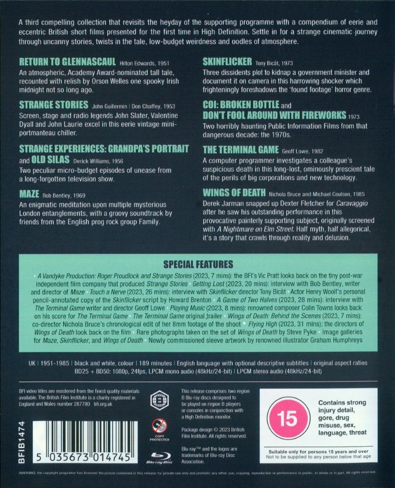 The third in the critically acclaimed BFI Flipside series – continuing its ongoing mission to curate an alternative Brit-screen history of overlooked rarities in deluxe home-entertainment editions – is a further compelling compendium of strange, striking, thrilling, horrific, eerie and eccentric short subjects from the heyday of the British cinematic supporting programme.