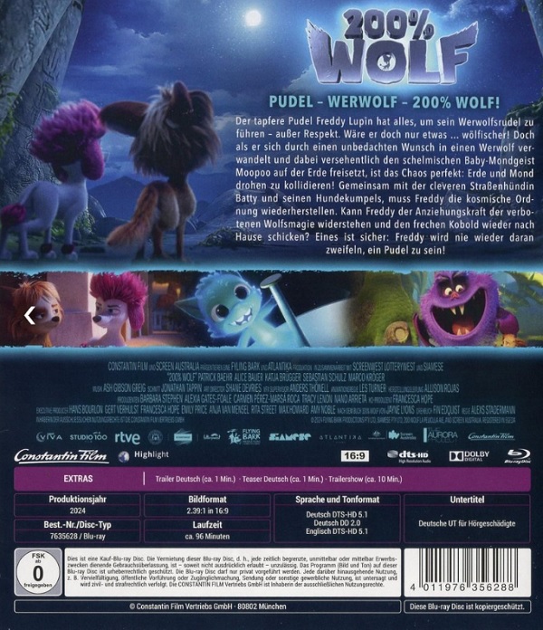 Fortsetzung des Kinder-Animationsfilms "100% Wolf": Der 15-jährige Sohn einer Werwolf-Familie ist traurig, weil er sich nur in einen Pudel verwandeln kann. Beim Versuch, die Gründe dafür zu erfahren, lernt er einen Baby-Mondgeist kennen, der versehentlich auf der Erde gelandet ist und nun Hilfe bei der Heimkehr benötigt. Der kindgerecht gestaltete Film stellt positive und starke Figuren in den Mittelpunkt, enthält aber auch bedrohliche Situationen. Diese werden jedoch stets schnell und humorvoll aufgelöst, sodass auch bei den jüngsten Zuschauenden keine nachhaltige Ängstigung zu befürchten ist. Im Mittelpunkt steht die Freundschaftsgeschichte mit zahlreichen märchenhaften Wesen, Abenteuern, die immer gemeistert werden, und einem glücklichen Ende. Überforderungen lassen sich bei allen Altersgruppen ausschließen.