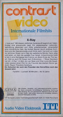 "X-Ray - Der erste Mord geschah am Valentinstag" ist Anfang der 80er Jahre ungekürzt von ITT in der Glasbox erschienen. Vor dem Film kommt ein ITT-Einspieler, keine Trailer.Im Besitz von 8 Benutzern.