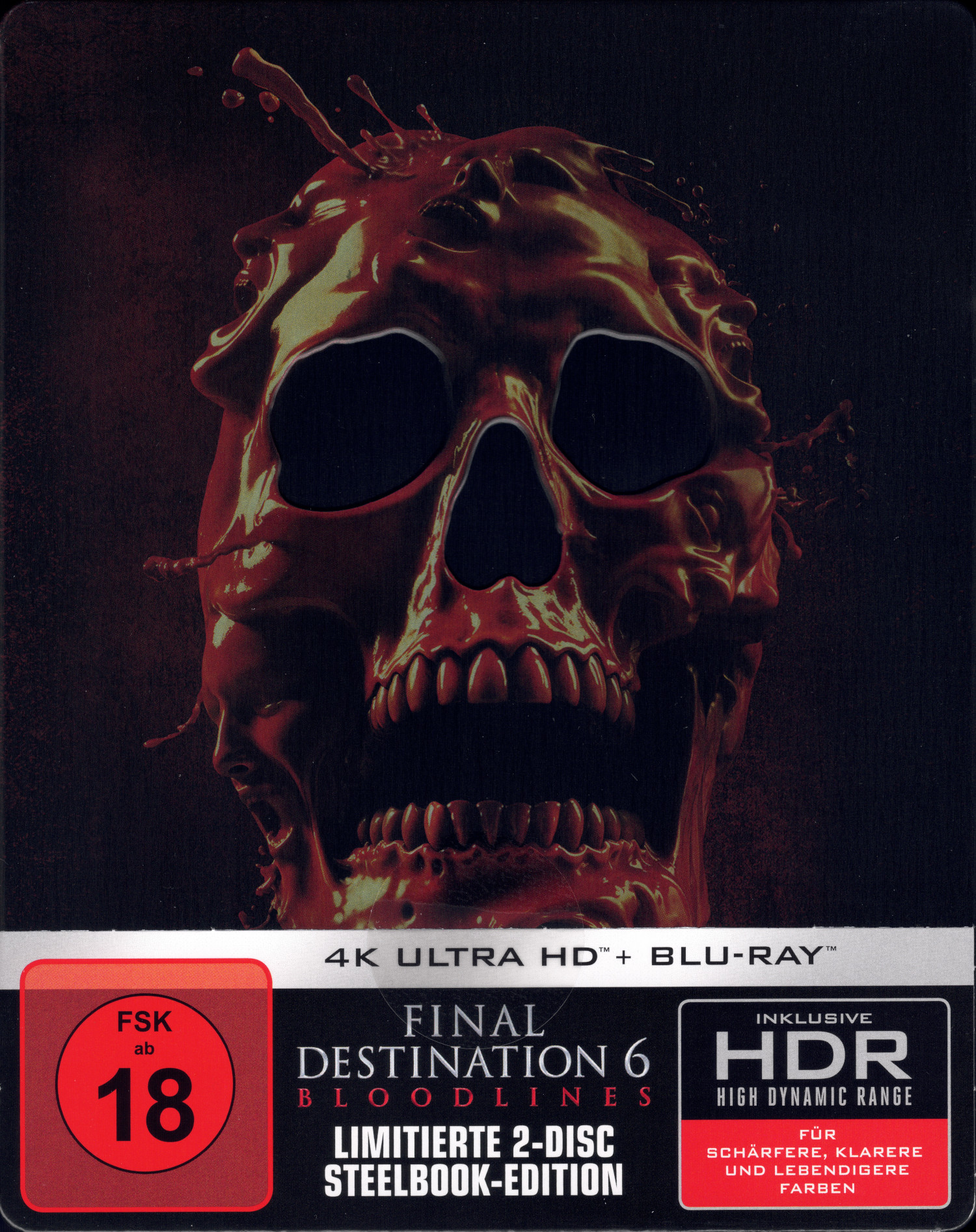 Limitiertes, nicht nummeriertes Steelbook mit dem Cover „Skull“, welches den Film auf UHD und Blu-ray enthält. Das FSK-Logo, die EAN, technische Daten und eine Inhaltsangabe befinden sich auf einem Papieraufleger (J-Card), welcher mit einem Aufkleber befestigt ist.