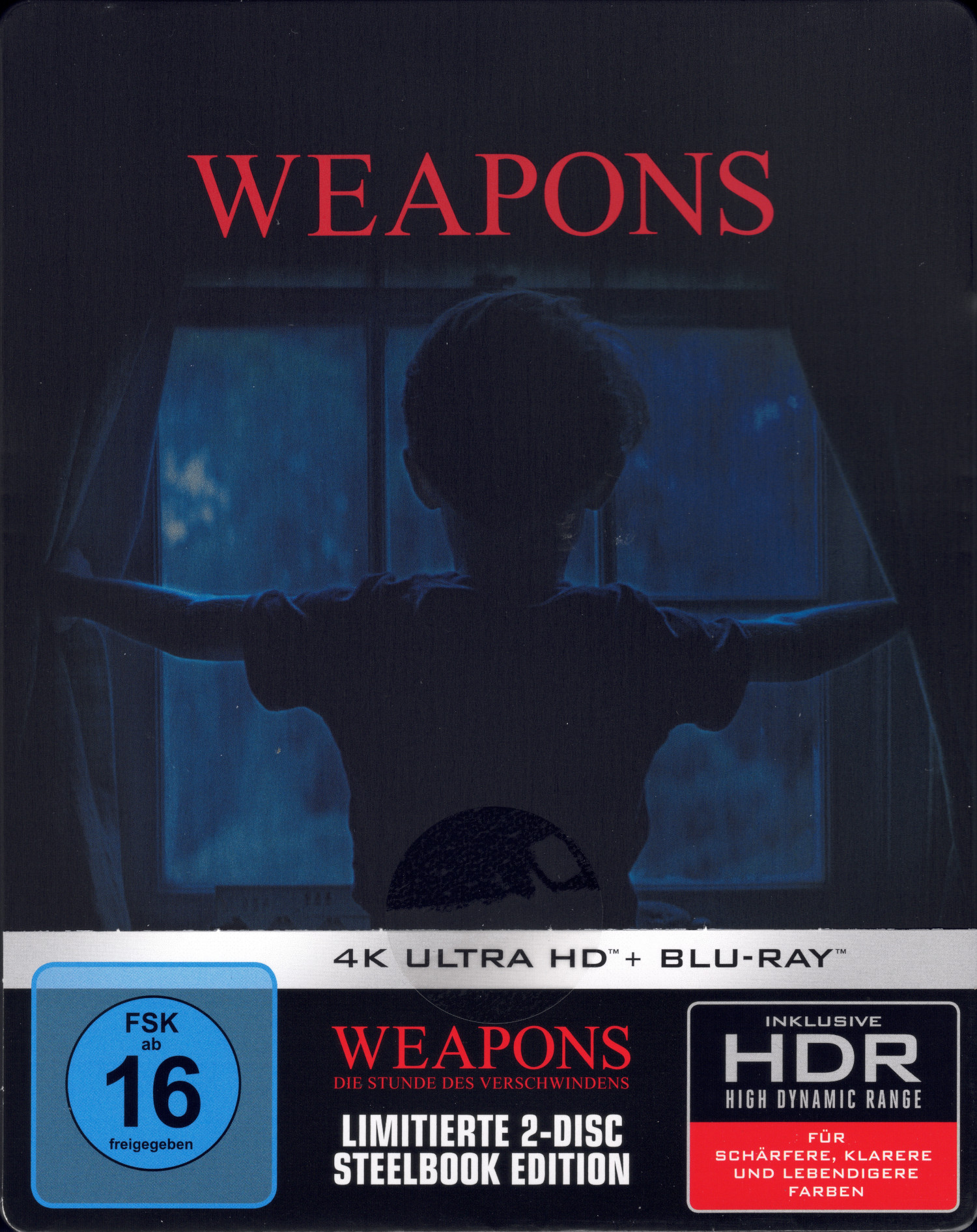 Limitiertes, nicht nummeriertes Steelbook, welches den Film auf UHD und Blu-ray enthält. Das FSK-Logo, die EAN, technische Daten und eine Inhaltsangabe befinden sich auf einem Papieraufleger (J-Card), welcher mit einem Aufkleber befestigt ist.