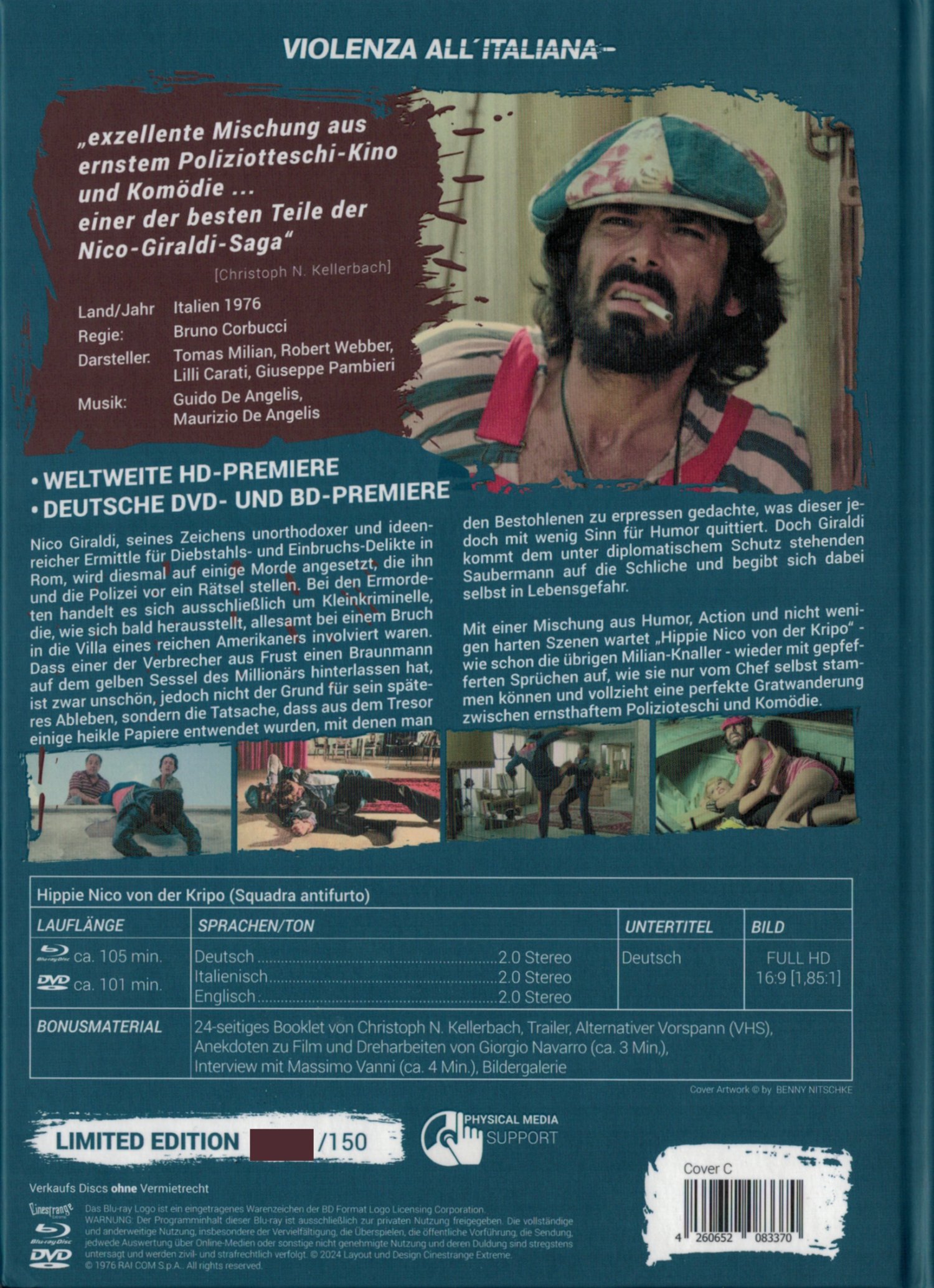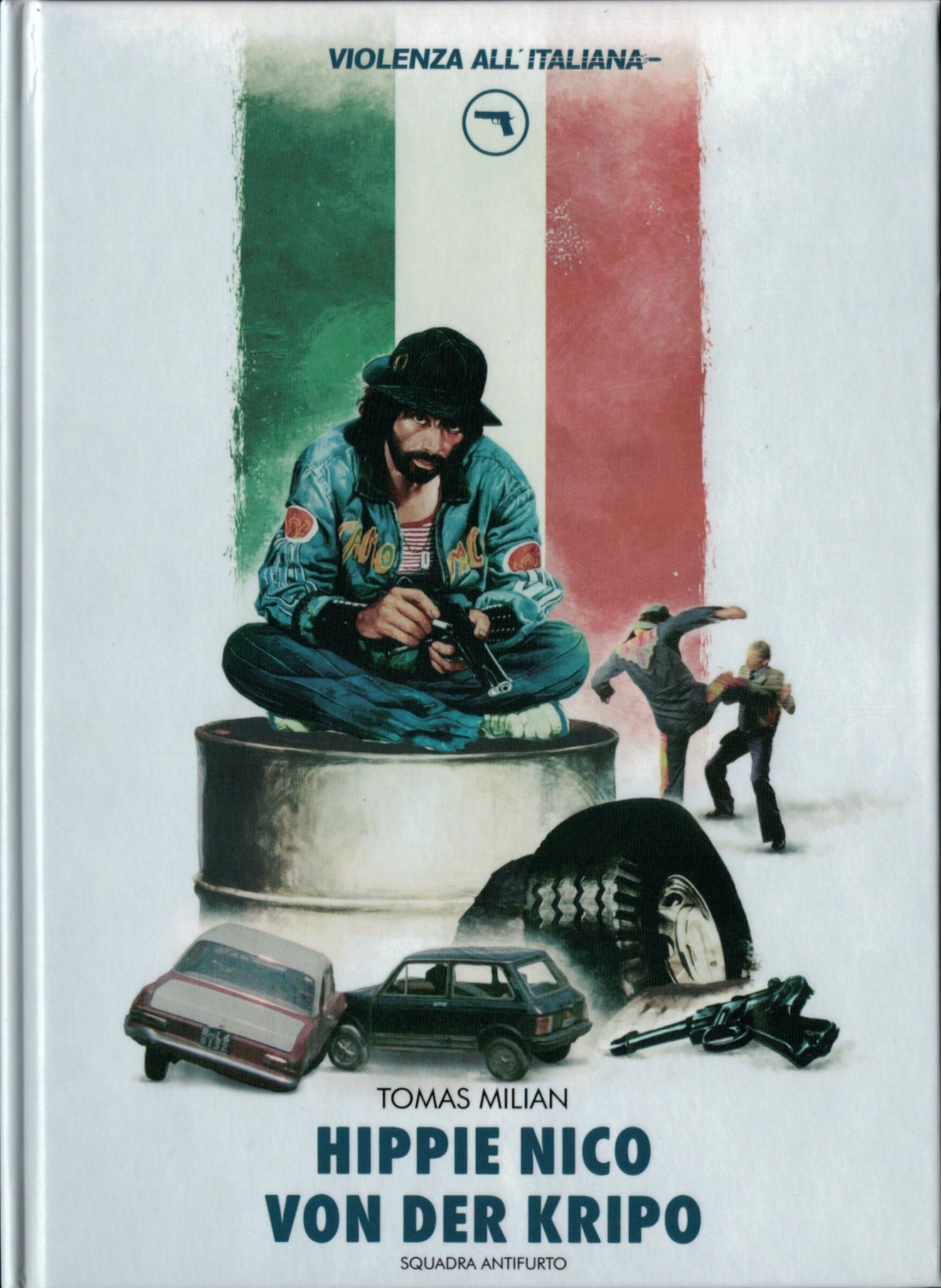 Cover C - erschienen in der Reihe "Violenza All' Italiana" - auf 150 Exemplare limitiert und nummeriert incl. 24-seitigem Booklet von Christoph N. Kellerbach: "Hippie Nico von der Kripo - Tomás Miliáns heitere Alternative zur Polizeigewalt".