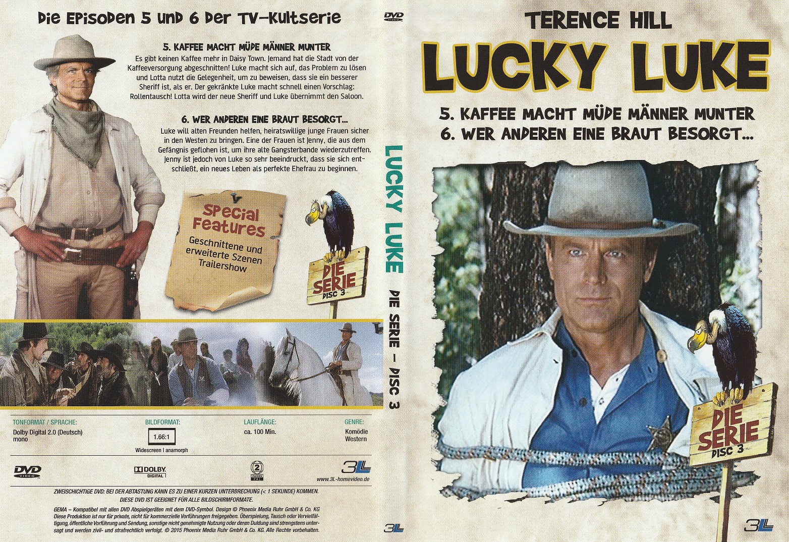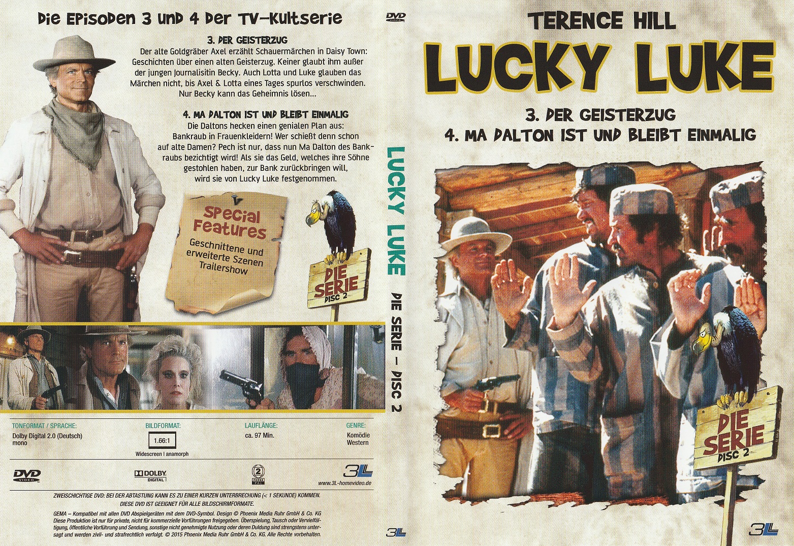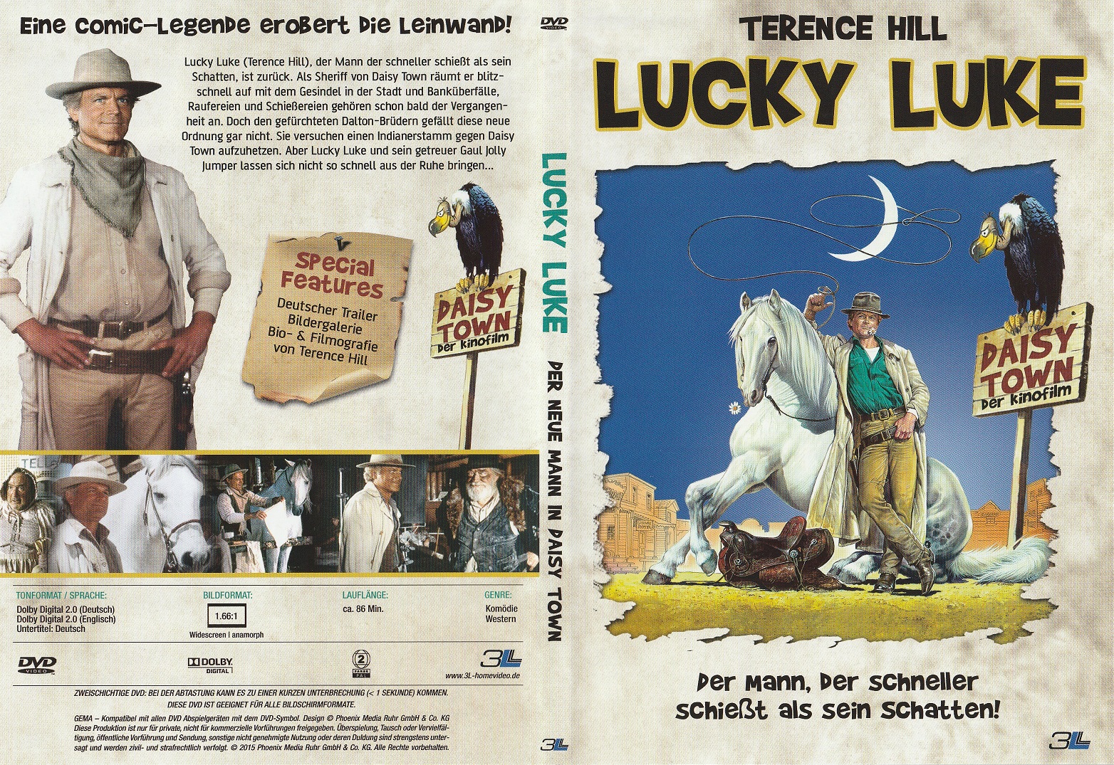 Bonus: Deutscher Trailer (1:44 Min.), Bildergalerie (1:24 Min.), Bio- und Filmografie zu Terence Hill, Lucky Luke - Eine Comiclegende wird verfilmt & Diverse weitere Trailer