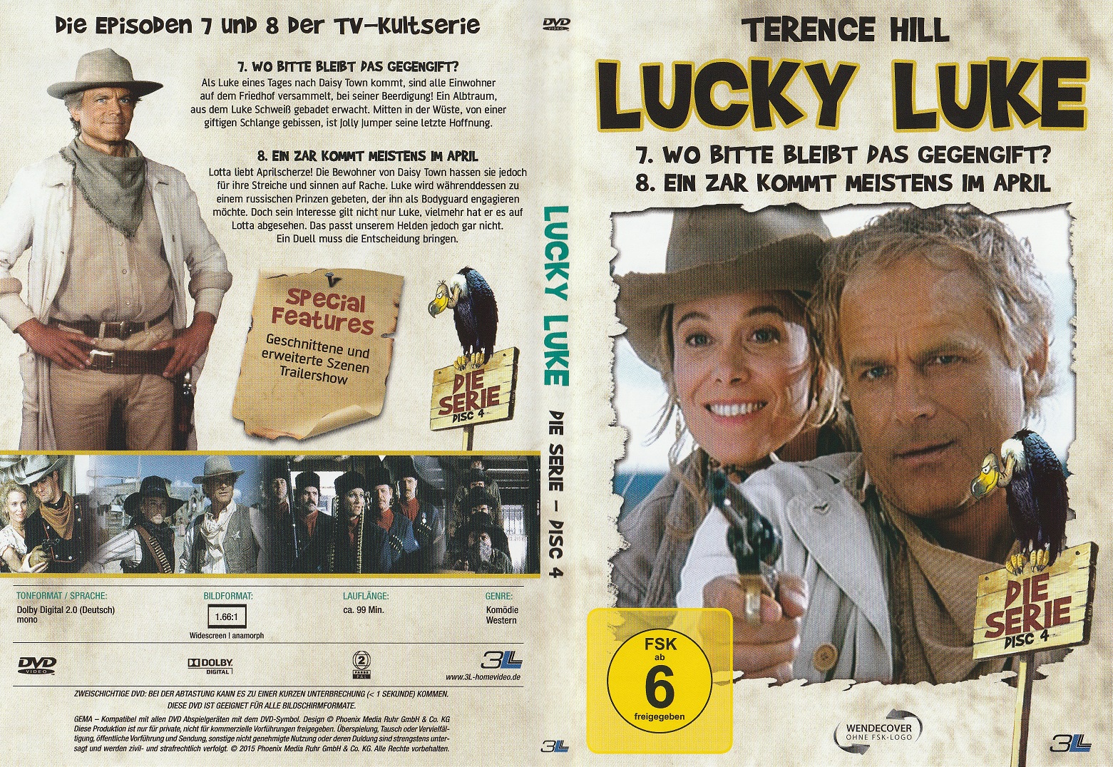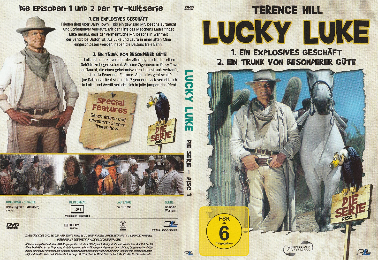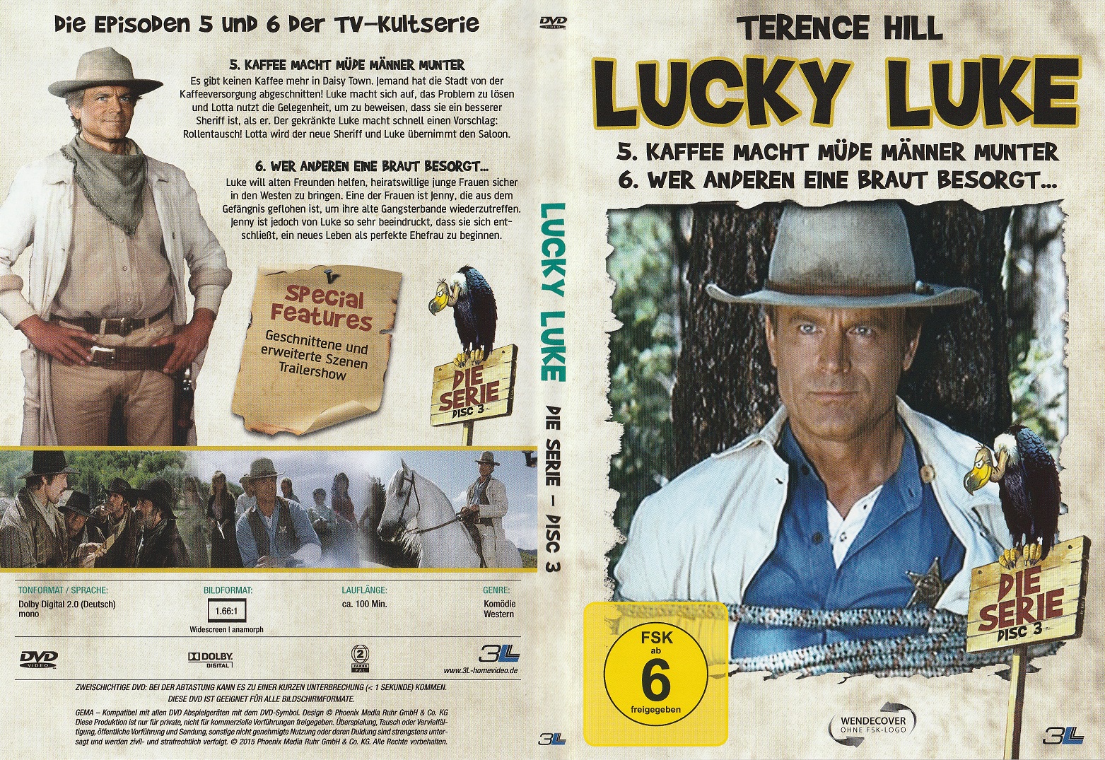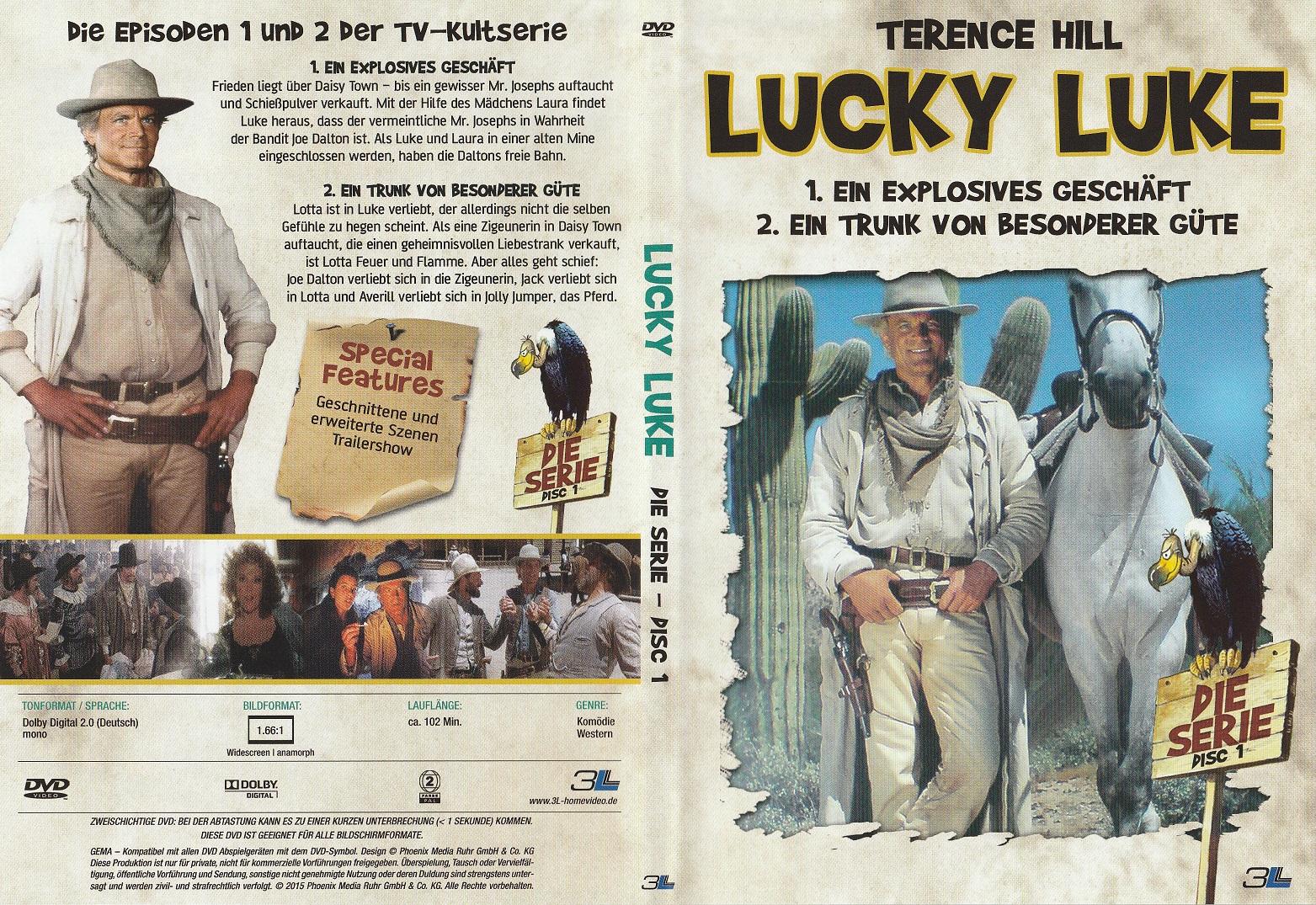 Bonus: Deutscher Trailer (1:44 Min.), Bildergalerie (1:24 Min.), Bio- und Filmografie zu Terence Hill, Lucky Luke - Eine Comiclegende wird verfilmt & Diverse weitere Trailer