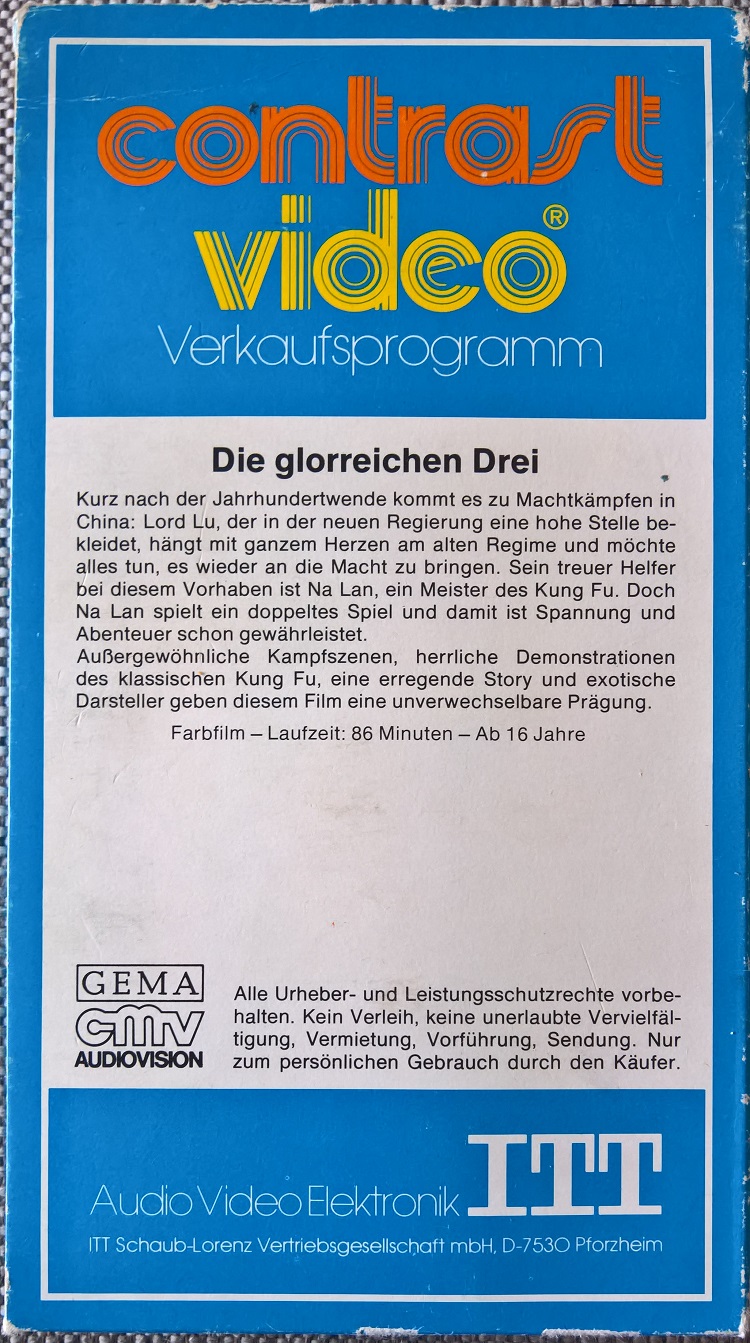 "Die glorreichen Drei" ist von ITT gekürzt in der Pappbox erschienen.Im Besitz von 3 Benutzern.