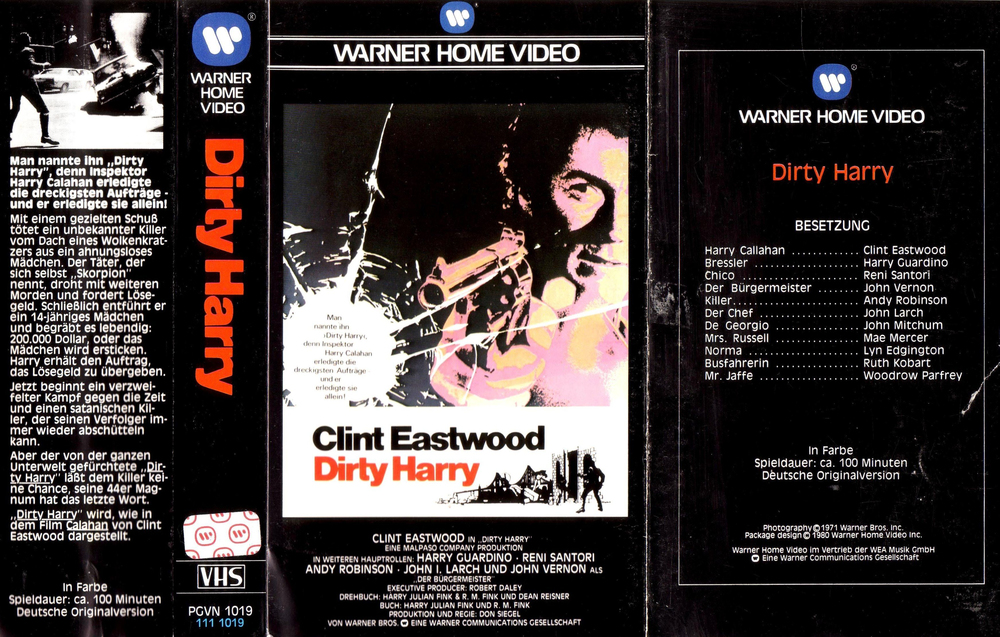 A Warner Bros. Communications Company presents und eine videogenerierte Tafel "Dirty Harry" - Deutsche Originalversion.
