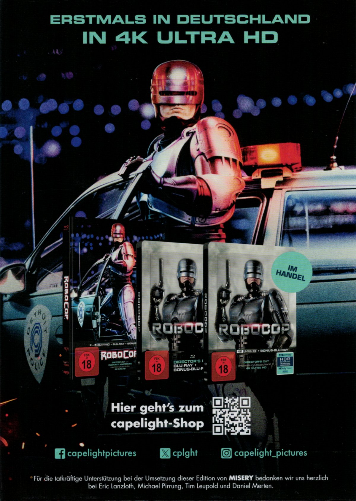 Das FSK-Logo ist nur auf einem das Mediabook umlaufenden Papieraufleger enthalten (Rückseite: Werbung für "Robocop"-Veröffentlichungen von capelight); ebenso die Rückentext-Angaben.Im Besitz von 59 Benutzern.