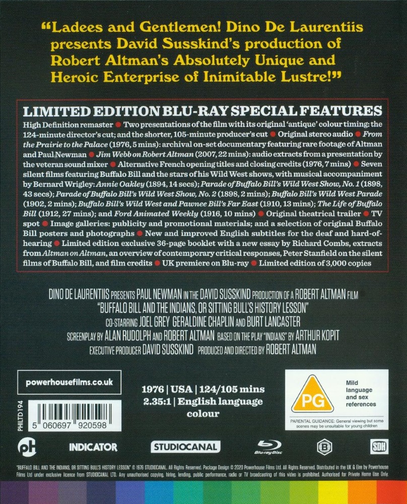 An all-star cast – including Paul Newman, Burt Lancaster, Geraldine Chaplin, Joel Grey, Harvey Keitel, and Shelley Duvall – assembles for Robert Altman’s follow-up to his 1975 critical success, Nashville. Swapping the country-and-western scene for Buffalo Bill’s ‘Wild West’ shows of the late nineteenth century, the film is another of Altman’s pitch-perfect satires, offering a sidelong glance at the myths of America.