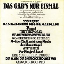 Super-8-Komplettfassung mit fünf Spulen zu jeweils ca. 120m Länge, Schwarz / Weiss, Tonfilm.Im Besitz von 0 Benutzern.