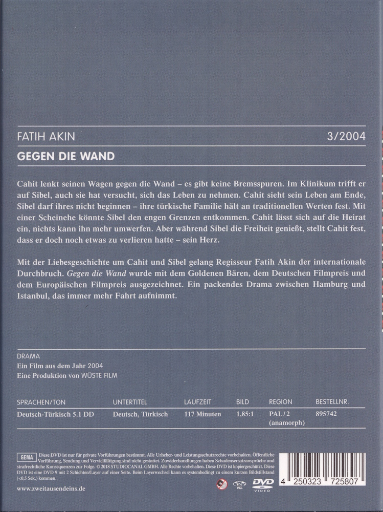 Ein Text (keine Autorenangabe) mit Hintergründen zu Regisseur Fatih Akin und Hauptdarstellerin Sibel Kekilli ist auf insgesamt drei Innenseiten zusammen mit je einem Screenshot (in Spotlack) aufgedruckt. Eine weitere Innenseite führt ein Zitat vom Kulturspiegel auf, wieder eine weitere die Filmcredits.