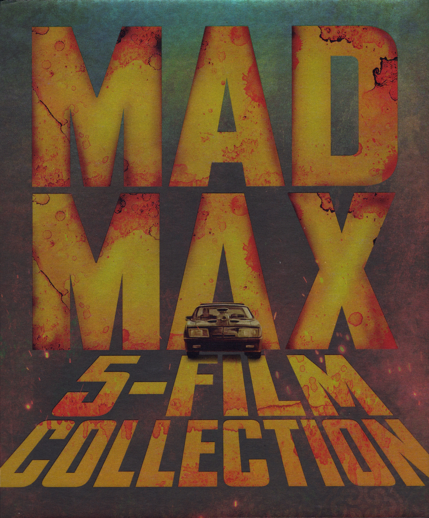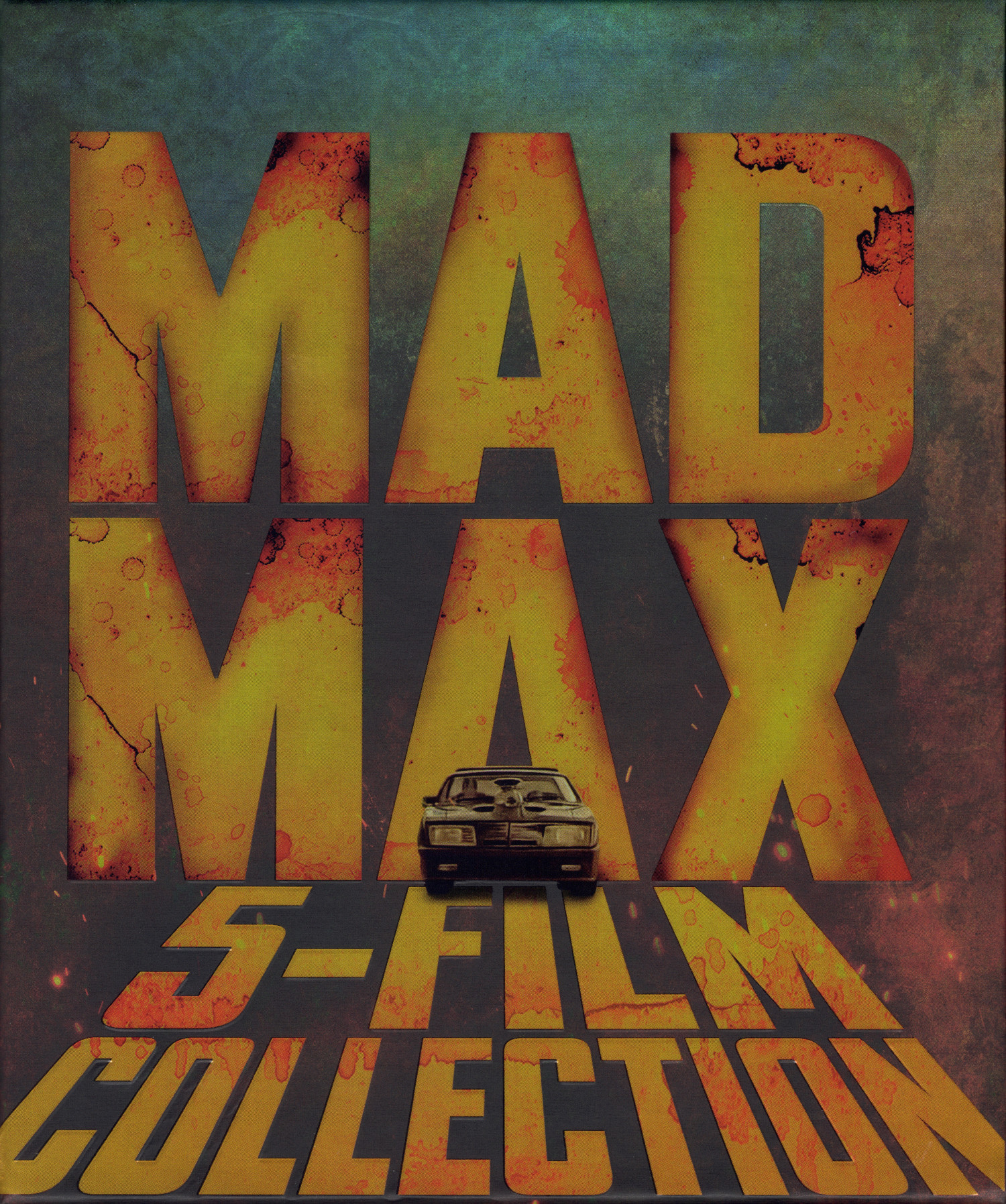 Alle fünf Filme der Mad Max-Reihe in einem magnetisch schließenden DigiPak in einem Pappschuber. Das FSK-Logo, die EAN, technische Daten und die Inhaltsangabe sind auf einen Pappaufleger (J-Card) aufgedruckt, der mit zwei Aufklebern befestigt ist. Der Schuber selbst und das DigiPak enthalten diese Angaben nicht.