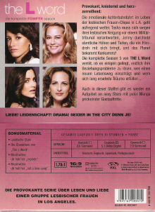 Staffel 5 mit 12 Brandneuen Folgen| - Lesbische Stars (13.17 Min) - Die Charaktere von „The L-Word“ (gesamt: 17.02 Min) - The L-Word Defined : Alice Pieszcecki (3.13 Min) - The L-Word Defined: Bette Porter (3.10 Min) - The L-Word Defined : Jenny Schecter (3.57 Min) - The L-Word Defined : Shane McCutcheon (3.10 Min) - The L-Word Defined : Tina Kennard (3.31 Min) - Musikvideo: Uh huh her „Explode“ (3.05 Min) - Musikvideo: Uh huh her „Not a Love song (3.35 Min) |