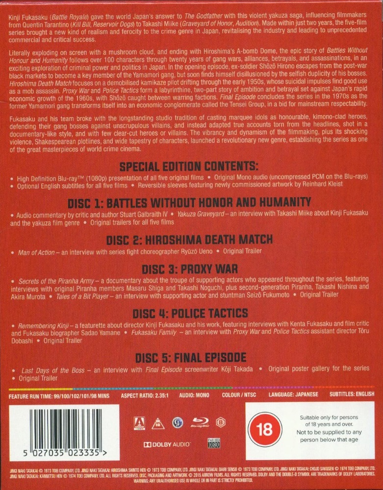 Kinji Fukasaku (Battle Royale) gave the world Japan's answer to The Godfather with this violent yakuza saga, influencing filmmakers from Quentin Tarantino (Kill Bill, Reservoir Dogs) to Takashi Miike (Graveyard of Honor, Audition). Made within just two years, the five-film series brought a new kind of realism and ferocity to the crime genre in Japan, revitalising the industry and leading to unprecedented commercial and critical success.
