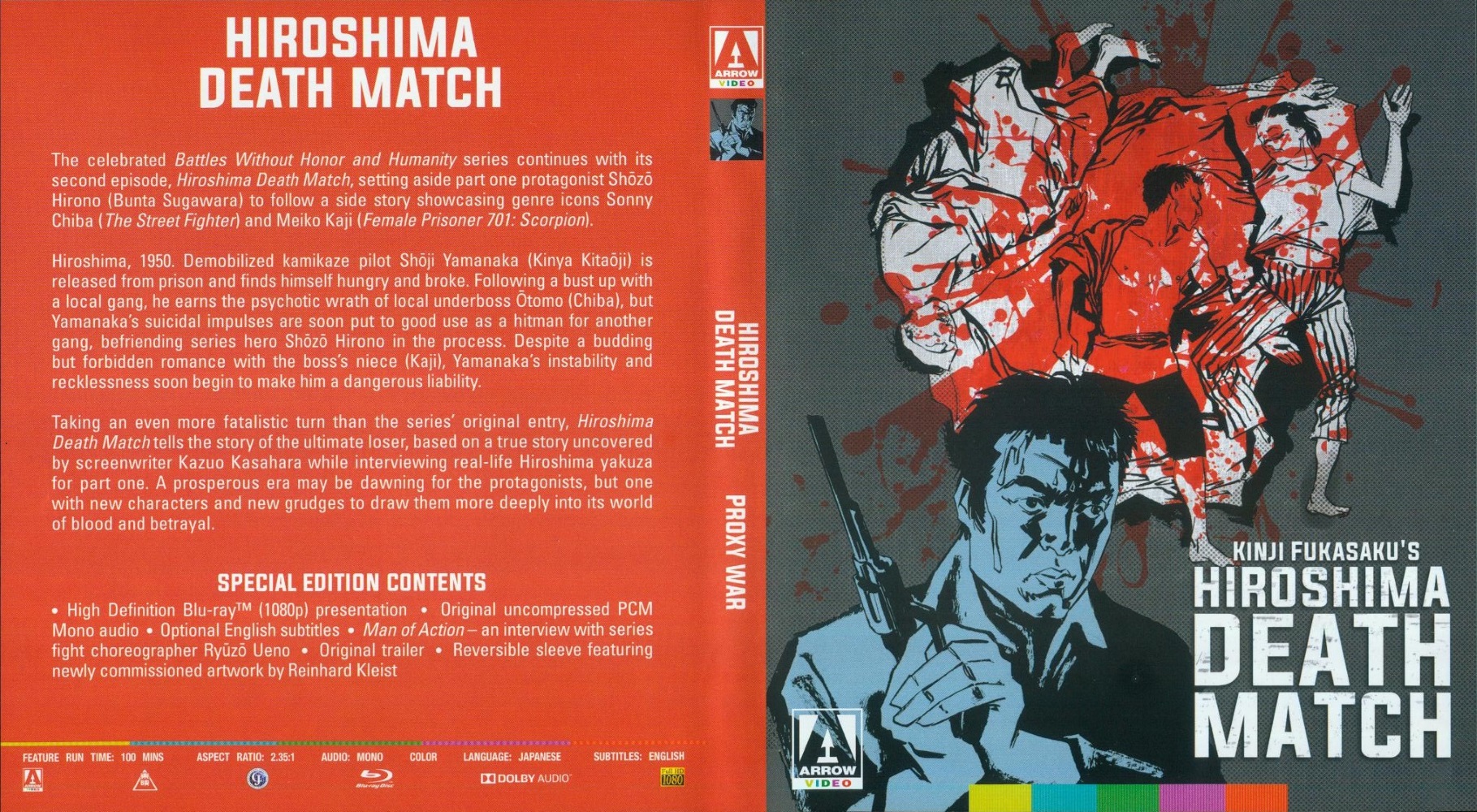 Literally exploding on screen with a mushroom cloud, and ending with Hiroshima's A-bomb Dome, the epic story of Battles Without Honour and Humanity follows over 100 characters through twenty years of gang wars, alliances, betrayals, and assassinations, in an exciting exploration of criminal power and politics in Japan. In the opening episode, ex-soldier Shôzô Hirono escapes from the post-war black markets to become a key member of the Yamamori gang, but soon finds himself disillusioned by the selfish duplicity of his bosses. Hiroshima Death Match focuses on a demobilised kamikaze pilot drifting through the early 1950s, whose suicidal impulses find good use as a mob assassin. Proxy War and Police Tactics form a labyrinthine, two-part story of ambition and betrayal set against Japan's rapid economic growth of the 1960s, with Shôzô caught between warring factions. Final Episode concludes the series in the 1970s as the former Yamamori gang transforms itself into an economic conglomerate called the Tensei Group, in a bid for mainstream respectability.