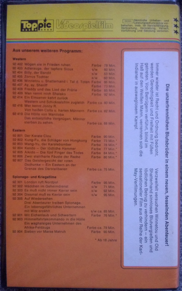 Erstauflage von Toppic auf VHS.Im Besitz von 5 Benutzern.
