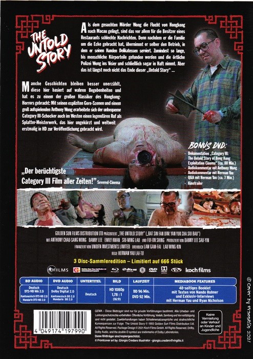 Wattiertes Mediabook limitiert auf 666 Stück, fortlaufend nummeriert (auf MB-Coverrückseite unter dem Infoblatt!)Im Besitz von 13 Benutzern.