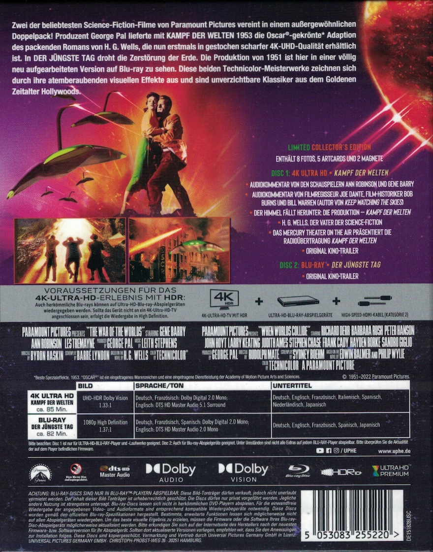 "Ein George Pal Doppelpack": "Gemischtes" 2-Disk Set mit diesem Film auf UHD-BD und Der jüngste Tag auf BD.Im Besitz von 28 Benutzern.