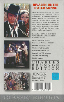 Diese Kaufkassetten-Fassung ist gegenüber der Erstauflage von Atlas-Video in mindestens einer Szene gekürzt. Dies ist ziemlich am Anfang, als eine Bande einen Bauernhof überfällt. Es fehlt, wie der Samurai, der sich hinter einem Vorhang versteckt hat, einem Bösewicht sein Schwert von vorne durch den Bauch stößt.Im Besitz von 1 Benutzern.