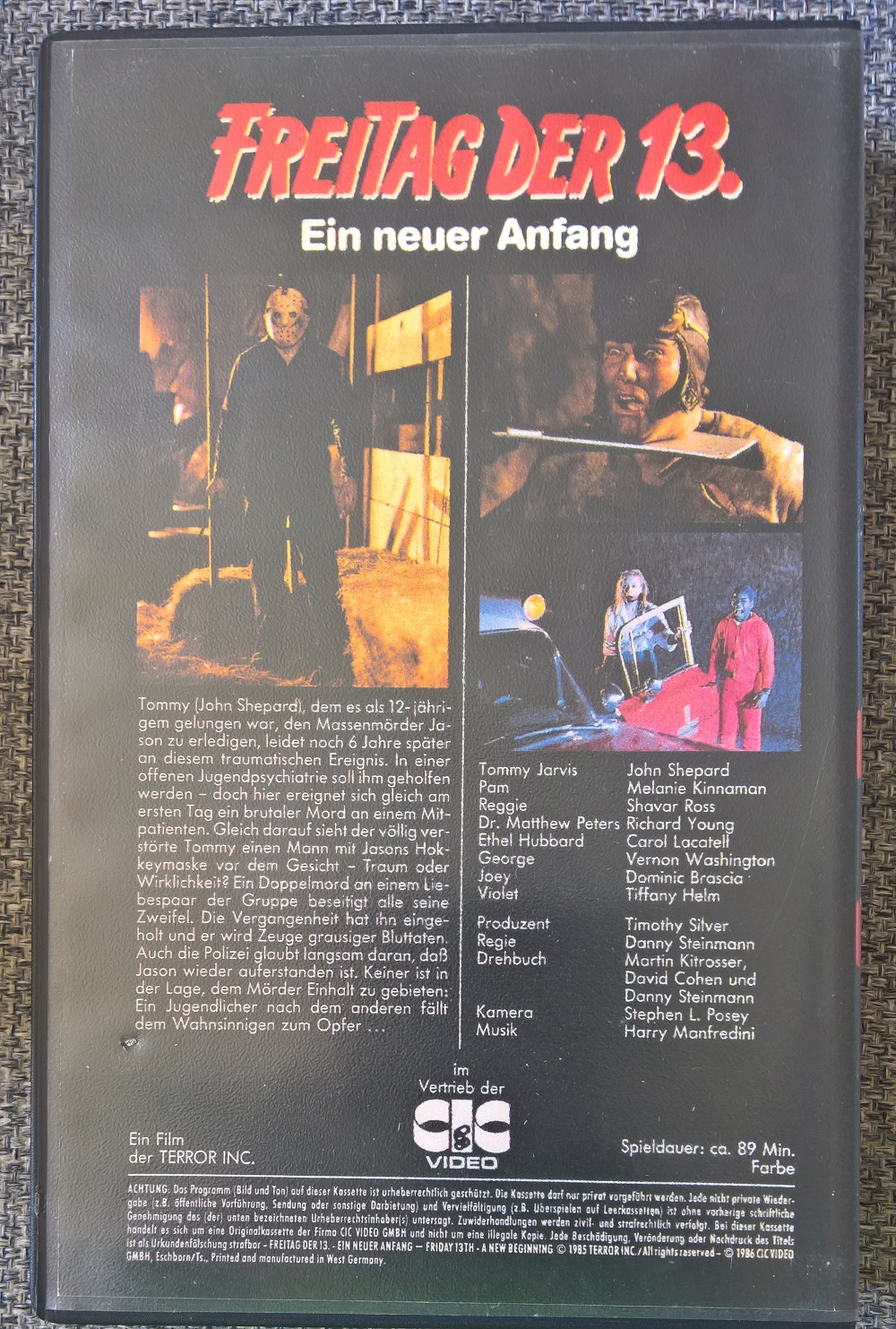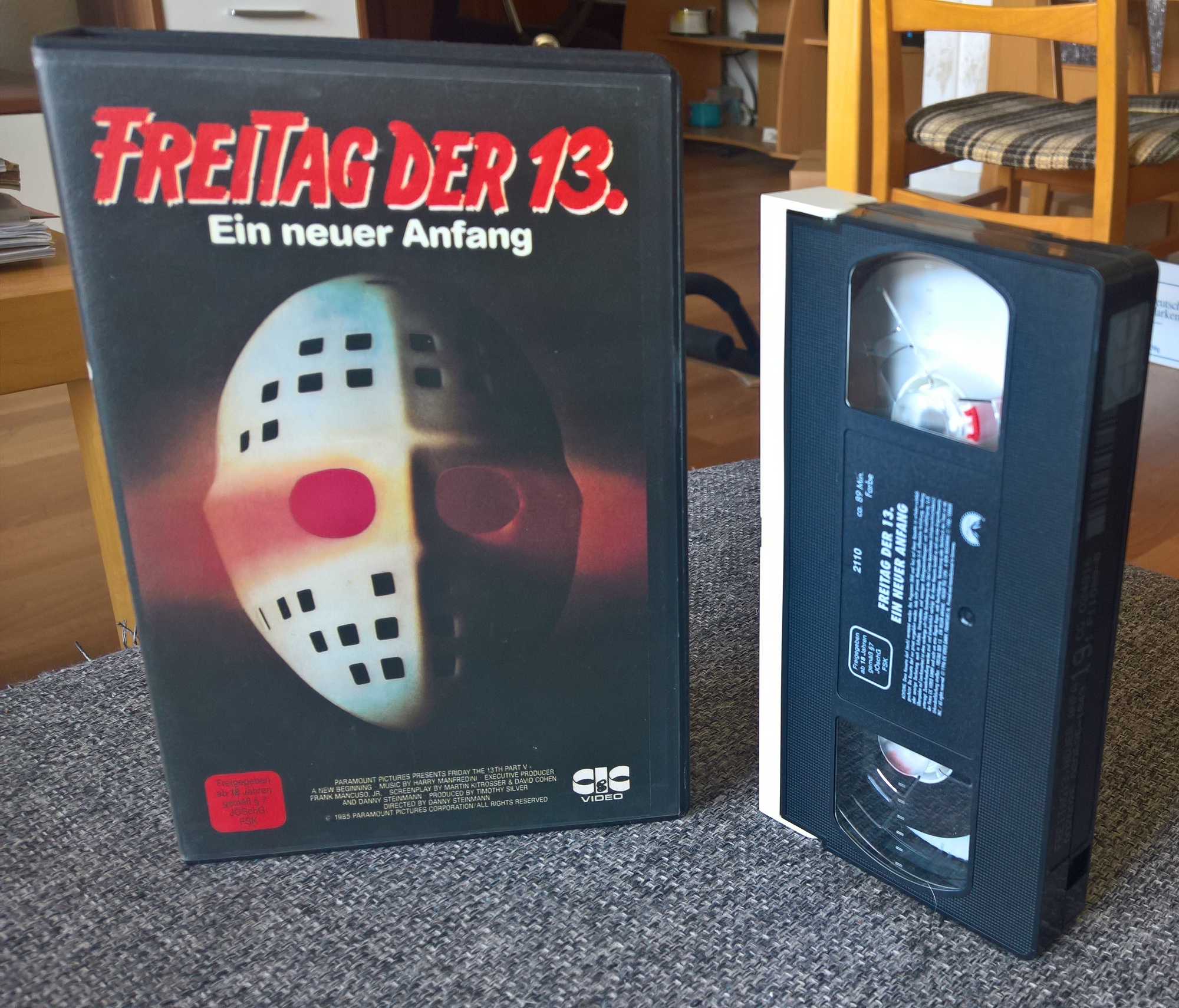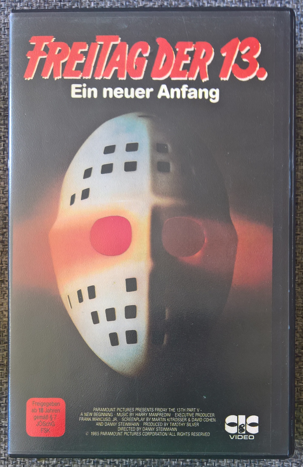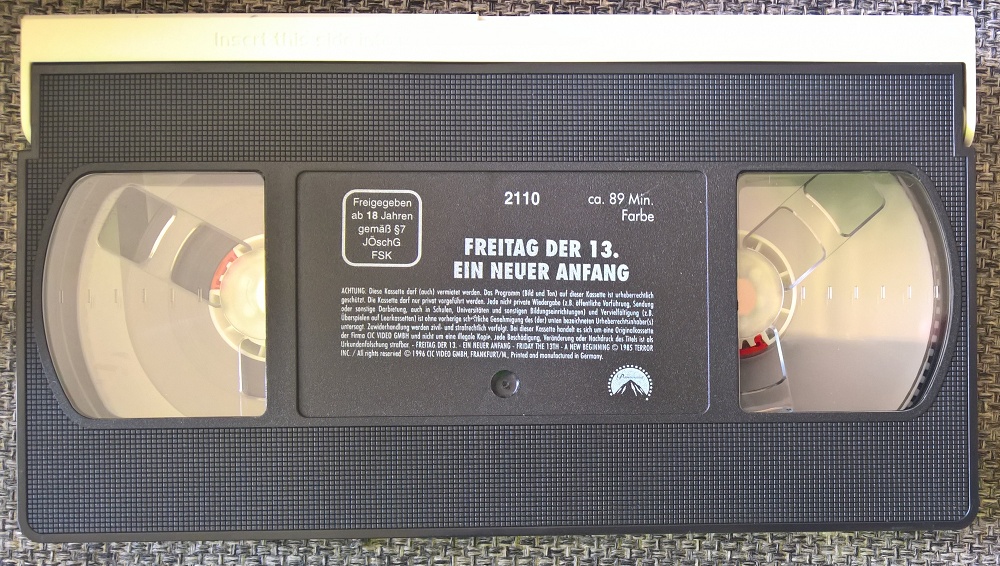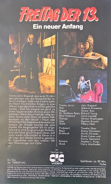 "Freitag der 13. Teil V - Ein neuer Anfang" ist 1996 als "richtige" Neuauflage von CIC erschienen. Das CIC-Logo vor dem Film ist neuer. Es gibt keine Trailer. Leider ebenso geschnitten wie die vorherigen Auflagen. Die Titelsequenz ist original. Man hat lediglich "Freitag der 13." und "Ein neuer Anfang" in roten Buchstaben auf das Bild gelegt.Im Besitz von 1 Benutzern.