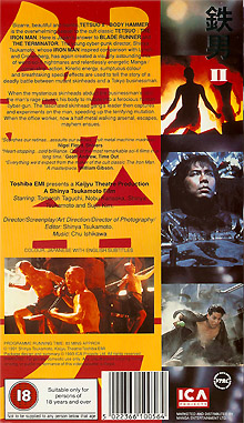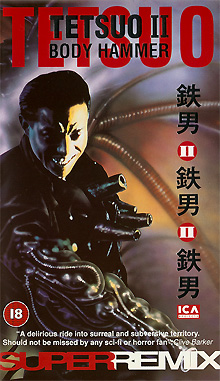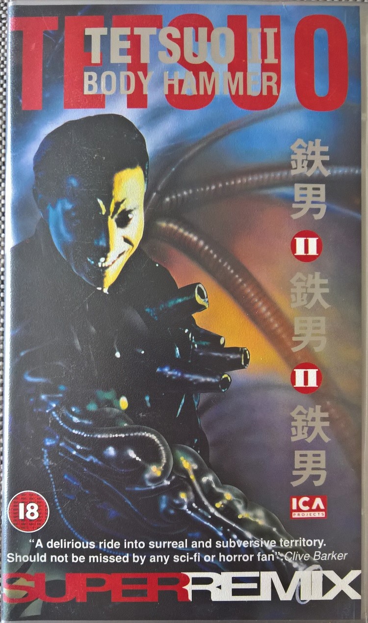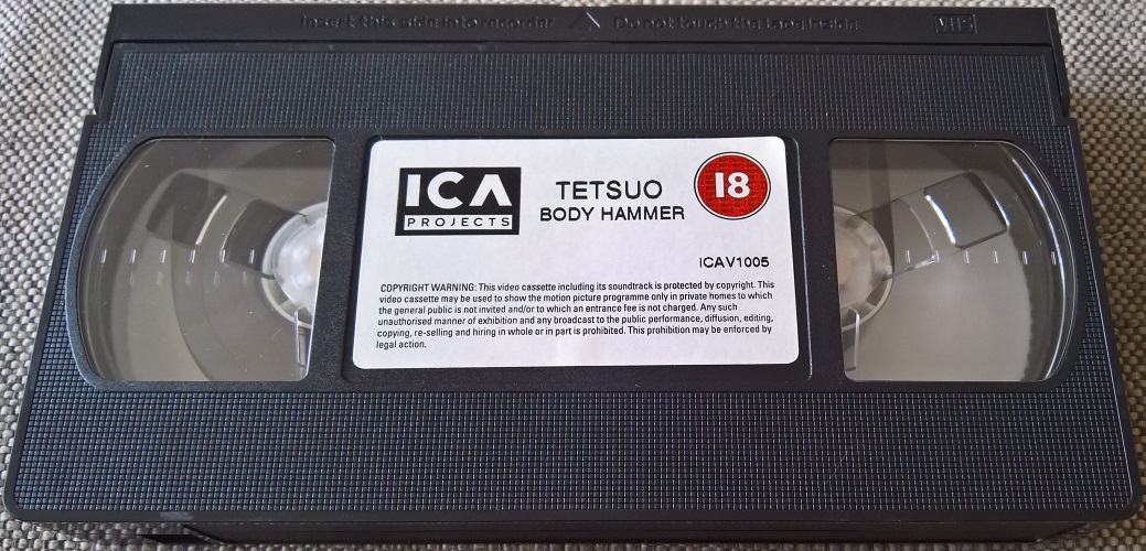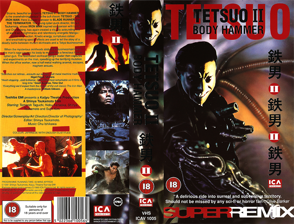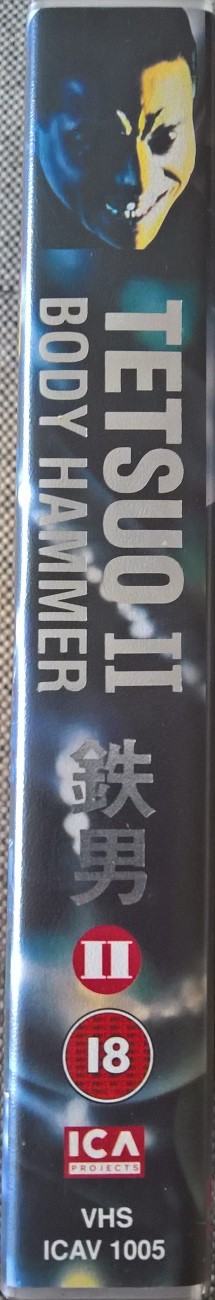 "Tetsuo II - Body Hammer" ist 1993 in GB auf VHS erschienen. Die Kassette kommt im kleinen Einleger und ist die Erstauflage in GB. Sie ist uncut. Vor dem Film kommt ein Rechtehinweis und die ICA- und Toshiba-Logos. Es gibt keine Trailer. Der Titel auf dem Cover ist Silber glänzend. Auf diese Auflage stützt sich die bundesdeutsche Beschlagnahme.Im Besitz von 14 Benutzern.