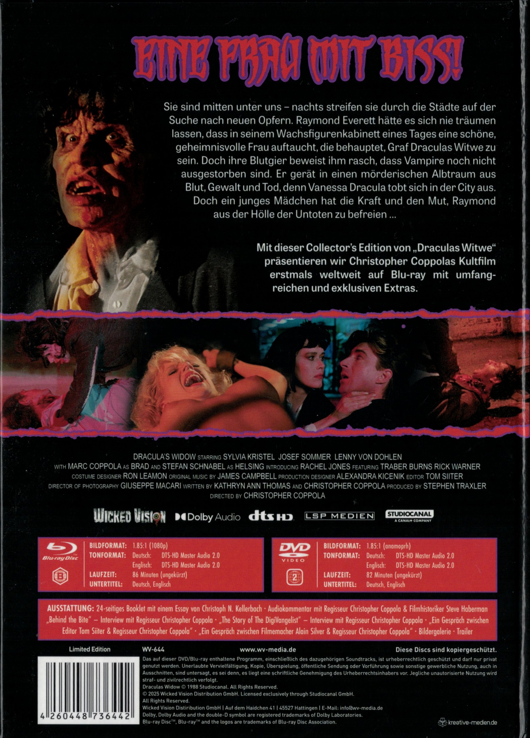 2-Disc Limited Collector's Edition (Blu-ray & DVD) im Mediabook - "Limitierte Auflage" (genaue Höhe nicht auf dem Backcover genannt; ebenso nicht einzeln nummeriert). Auf der Website von Wicked-Vision wird eine 666er-Limitierung genannt.