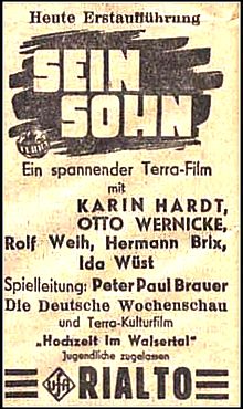 Das UFA-Filmtheater RIALTO in Litzmannstadt (Verleih- und Theaterbezirk Berlin-Ostdeutschland) nimmt die Terra-Produktion am 12. Januar 1942 ins Programm.