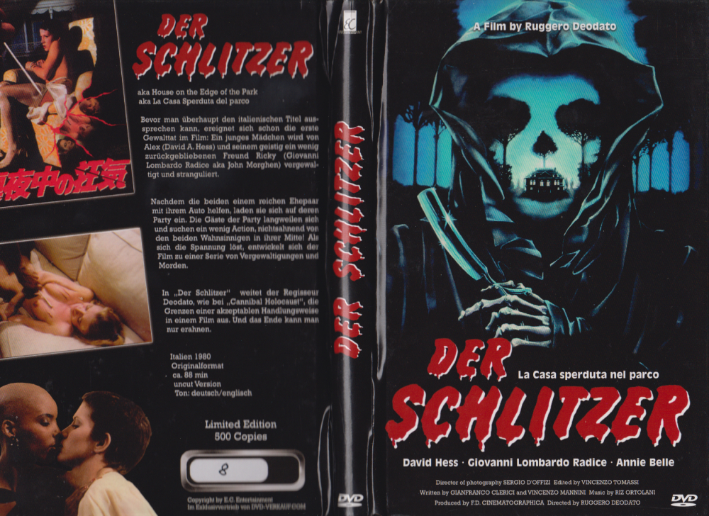 Auf 500 Stück limitierte große Hartbox mit deutschen Covertexten und deutschem Titel "Der Schlitzer". Drinnen steckt die ungekürzte EC-DVD (wie auch schon beid er Laser Paradise Auflage), für mehr technische Details also bitte diese ofdb-Eintragungen checken. Die Hartbox wird laut Copyright-Hinweis auf dem Hartboxenrücken von DVD-Verkauf.com exklusiv vertrieben.Im Besitz von 55 Benutzern.