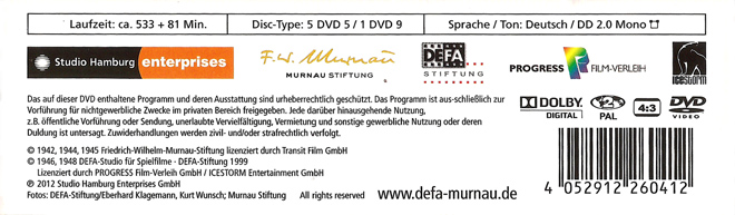 * Ab 79:30 Min. Logo der DEFA-Stiftung mit Copyright von 1999 bei Fortführung der Filmmusik.