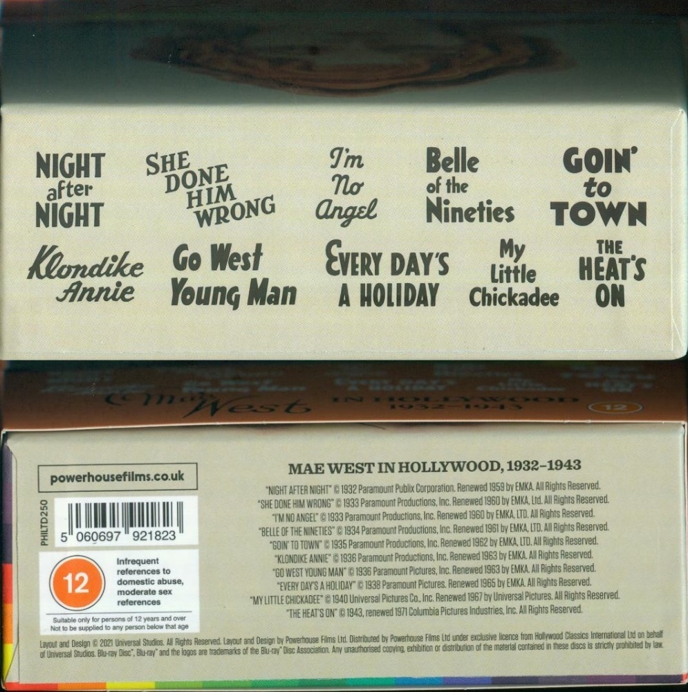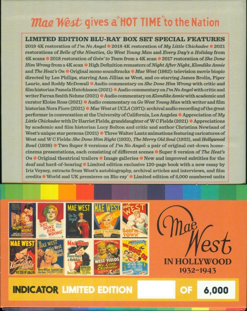 6-Blu-ray-Kollektion mit allen zehn Mae-West-Filmen der 30er und 40er Jahre.