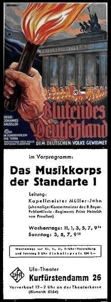 * Ursprünglich handelte es sich um einen 36-minütigen Kurzfilm. Die Terra machte einen abendfüllenden "Gross-Tonfilm" daraus, indem sie Filmmaterial über Hitlers Ernennung zum Reichskanzler am 30. Januar 1933 und die Feiern der NSDAP in Berlin hinzugefügte und den Film neu zusammenschnitt. Die Produktion wurde mit viel Aufwand (oftmals mit Kapellen vor den Kinos, deren Fassaden man mit Fahnen und Portraits führender Parteimitglieder schmückte, sowie mit einführenden Reden vor den Vorstellungen) überall im Reich gezeigt und avancierte schnell zum damals meistgesehenen Film seines Genres - zeitweise befand sich Blutendes Deutschland mit über 100 Kopien gleichzeitig im Programm der deutschen Lichtspielhäuser.