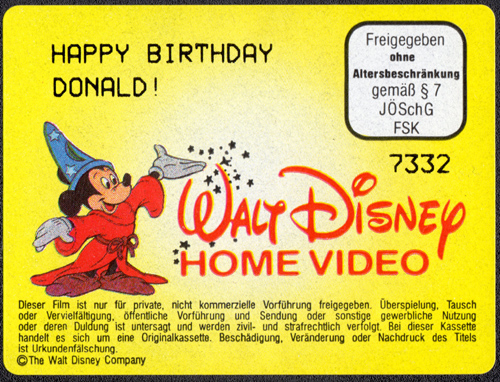Kassette mit der Überschrift: „Happy Birthday Donald! Ein Superstar feiert“ enthält neben dem o.g. auch 6 weitere Kurzfilme:Im Besitz von 5 Benutzern.