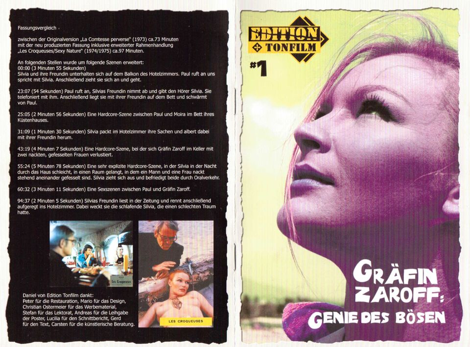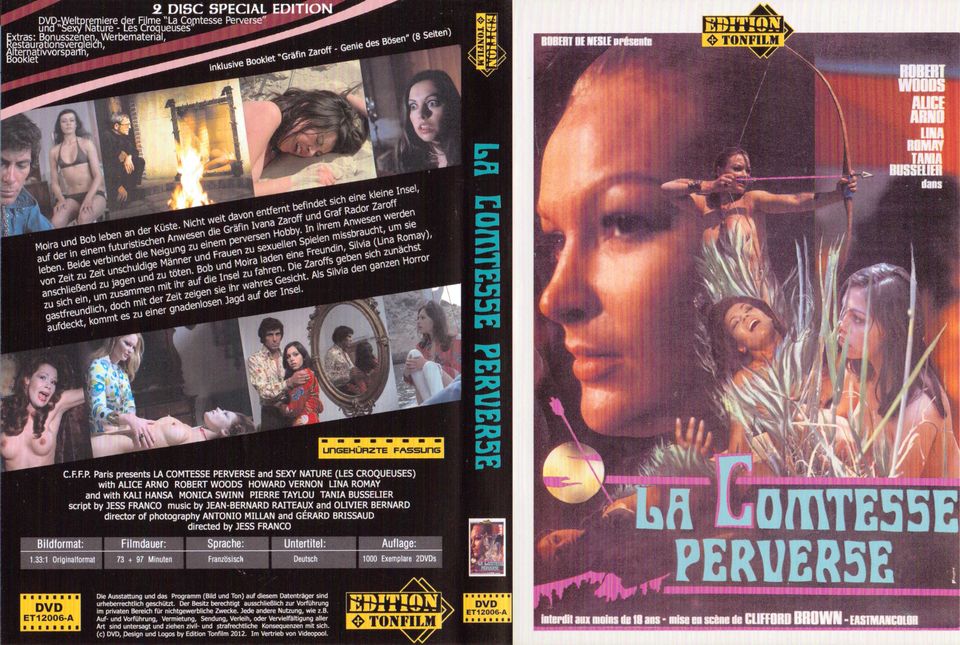 In diesem 2-Disk-Set sind die Alternativ-Fassungen "La Comtesse Perverse" und "Sexy Nature" auf je einer DVD-5 enthalten. Sexy Nature ist eine unter anderem um Hardcoreszenen angereicherte Fassung.