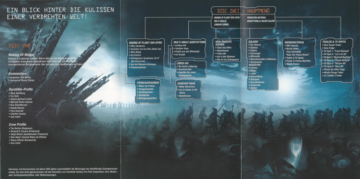 -Trailer & TV-Spots: (Kino Teaser-Trailer, Kino-Trailer, TV-Spot 1 - Event Revised, TV-Spot 2 - Let's go Alt, TV-Spot 3 - Big Event Rev/Eyes, TV-Spot 4 - Planet/Alt/Eyes, TV-Spot 5 - Review Alt, TV-Spot 6 - Bazz All, Planet der Affen-Saga, Moulin Rouge Trailer, Dr.Dolittle 2 Trailer