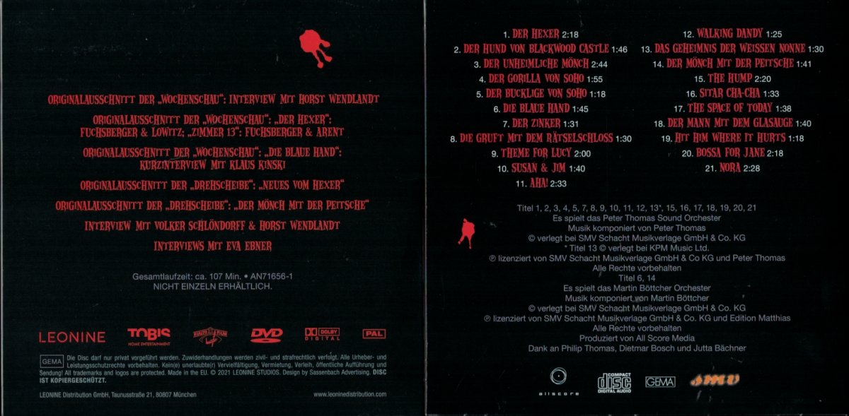 4) eine Soundtrack-CD "The Sound of Edgar Wallace - Originalmusik aus den deutschen Kult-Krimis" [exklusiv in dieser Sonderauflage] im Papp-Sleeve