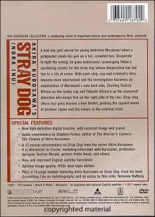 Der Bildtransfer ist akzeptabel (mehr aber auch nicht). Sehr ungewöhnlich ist, dass die DVD nicht regional codiert ist: Toho verleiht seine Filme an Criterion nur für den nordamerikanischen Markt. Vielleicht war es ein Versehen, das in späteren Auflagen "korrigiert" wird.
