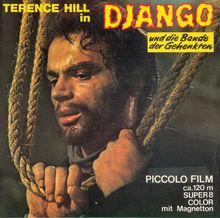 Zu Beginn dieser Fassung rekrutiert Django hier auf die bekannte, originelle Art und Weise seine "Bande der Gehenkten", um eine alte Rechnung mit Lukas (G. Eastman) zu begleichen. Nachdem die Männer "Gespenster" gespielt haben, kommt es zum Verrat. Nachdem Jose Torres den Befehl "Abmarsch" gegeben hat, ist aber hier in dieser Fassung weder von der "Bande der Gehenkten" nochmals etwas zu sehen, noch von dem Überfall auf den Goldtransport, den sie begeht!