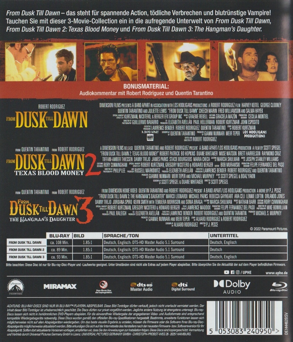 Alle drei Filme entsprechen der ungekürzten US R-Rated Fassung.