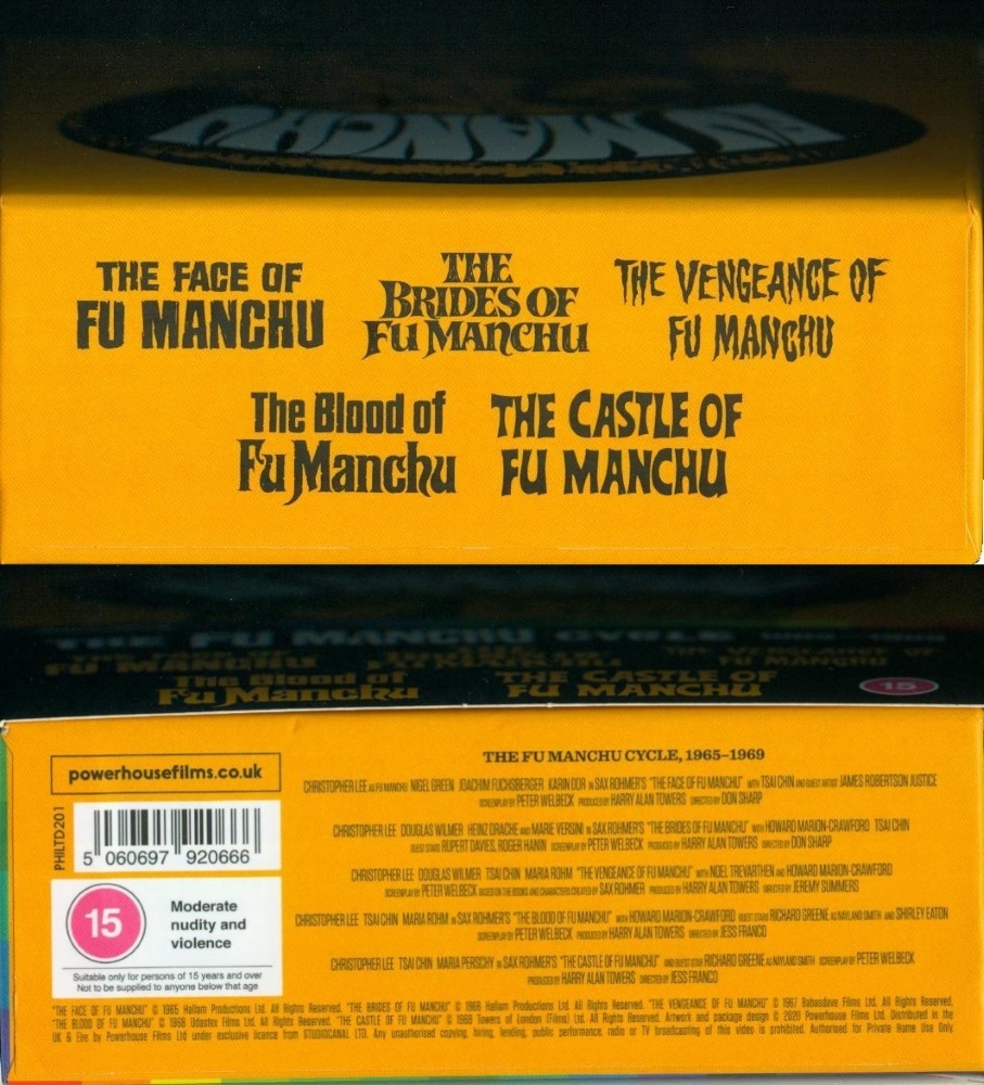 Box Set mit 5 Blu-rays zur fünfteiligen Fu-Manchu-Reihe mit Christopher Lee.