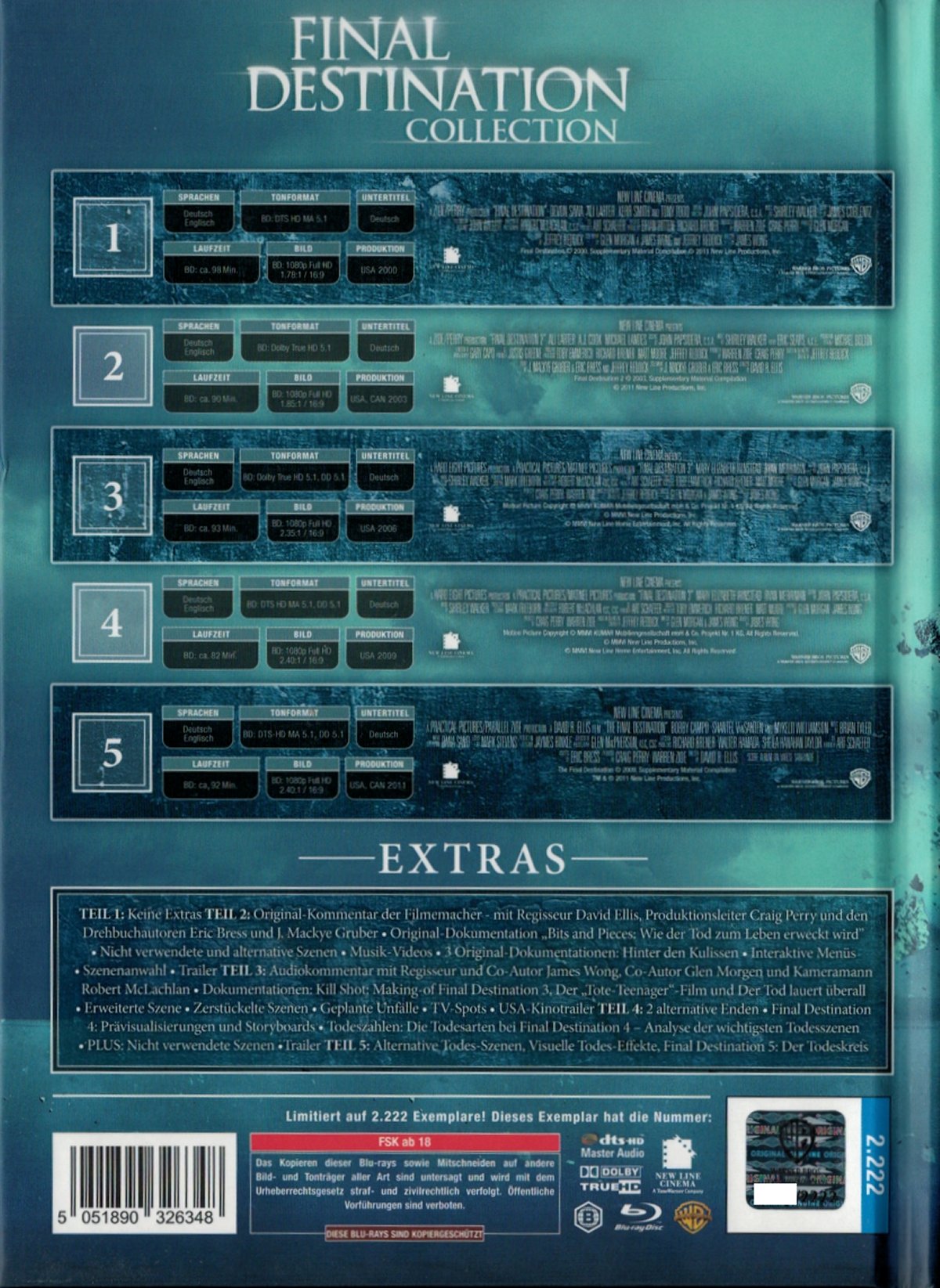OFDb - Blu-ray Disc: Warner / Nameless Media (Big Book Collection) (Deutschland), Freigabe: FSK Keine Jugendfreigabe/ab 18 von Final Destination 5 (2011)