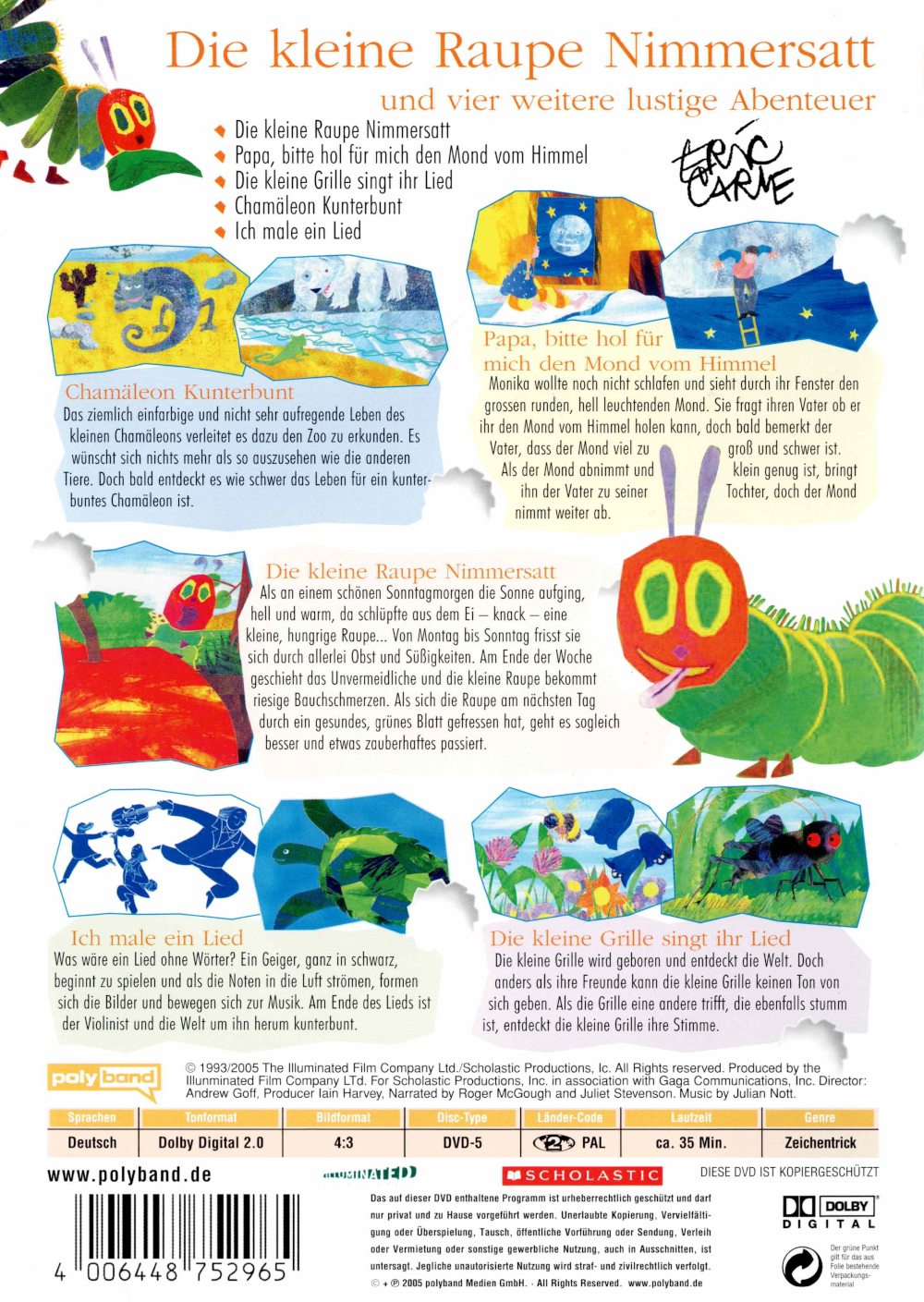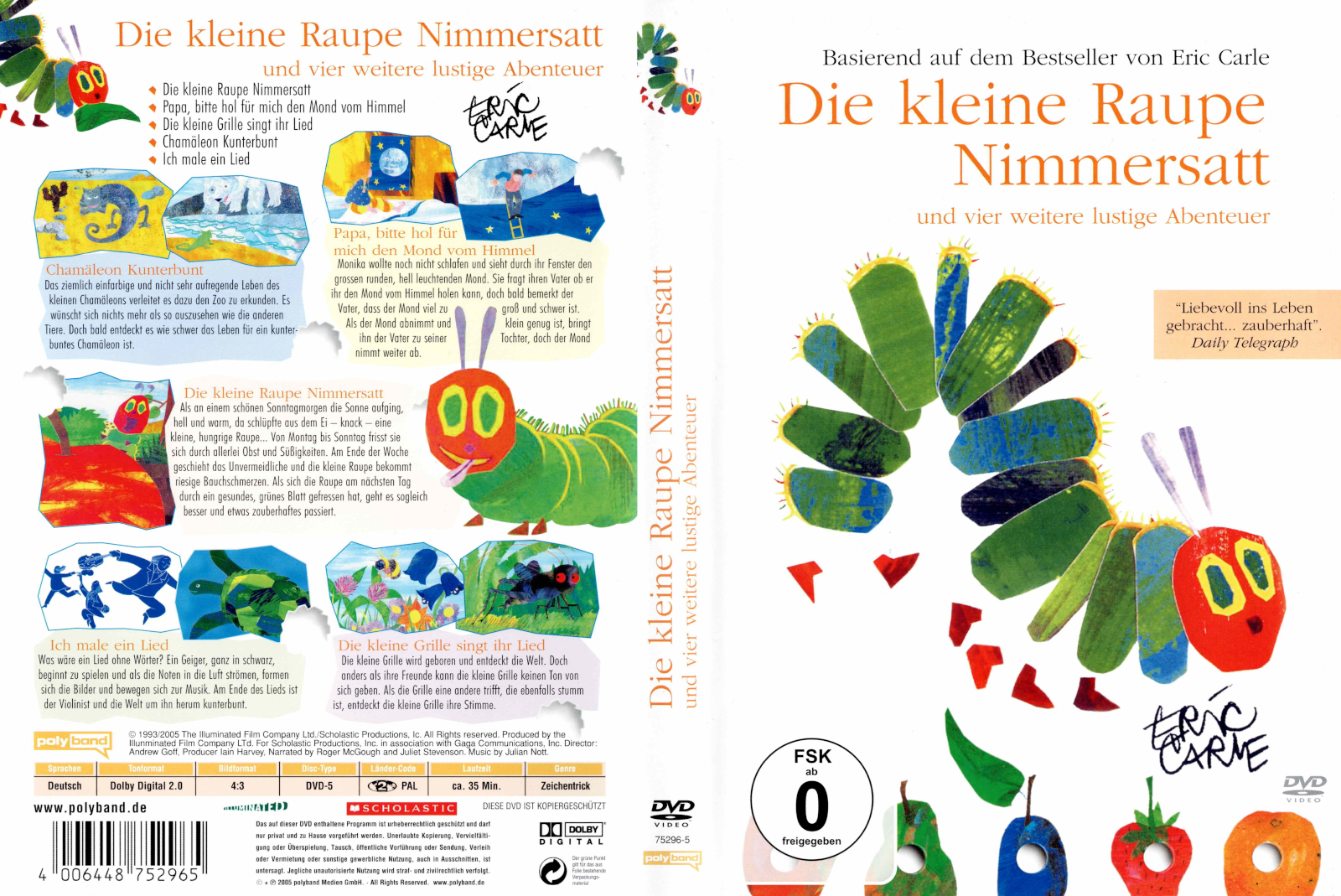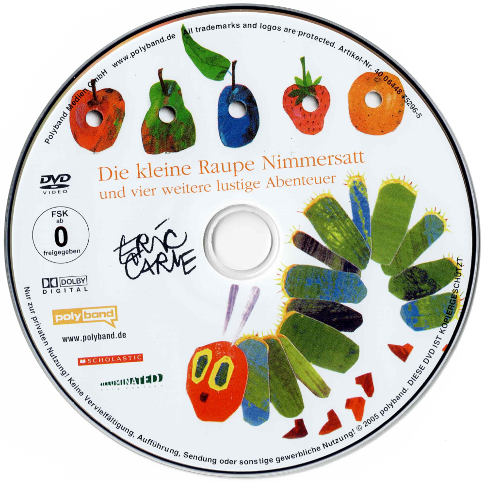 Unter dem Titel "Die kleine Raupe Nimmersatt und vier weitere lustige Abenteuer" sind alle 5 Geschichten der Mini-Serie auf einer DVD enthalten.