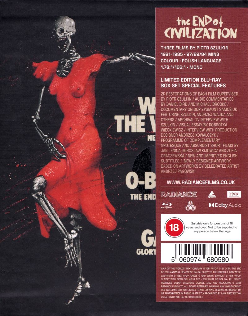 "2K restorations of each film supervised by Piotr Szulkin, DoP Witold Sobocinski, and sound engineer Nikodem Wolk-Laniewski with additional restoration work by Radiance Films" (Web-Info)
