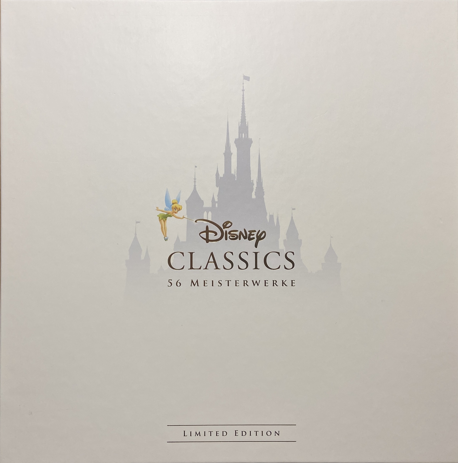 Die "Disney Classics 56 Meisterwerke Limited Edition" beinhaltet 56 Filme von Disney in einem Sammlerbuch, welches in einem stabilen Kartonschuber verpackt ist. Folgende Filme sind enthalten: