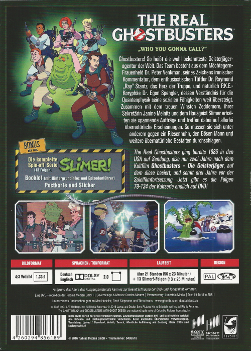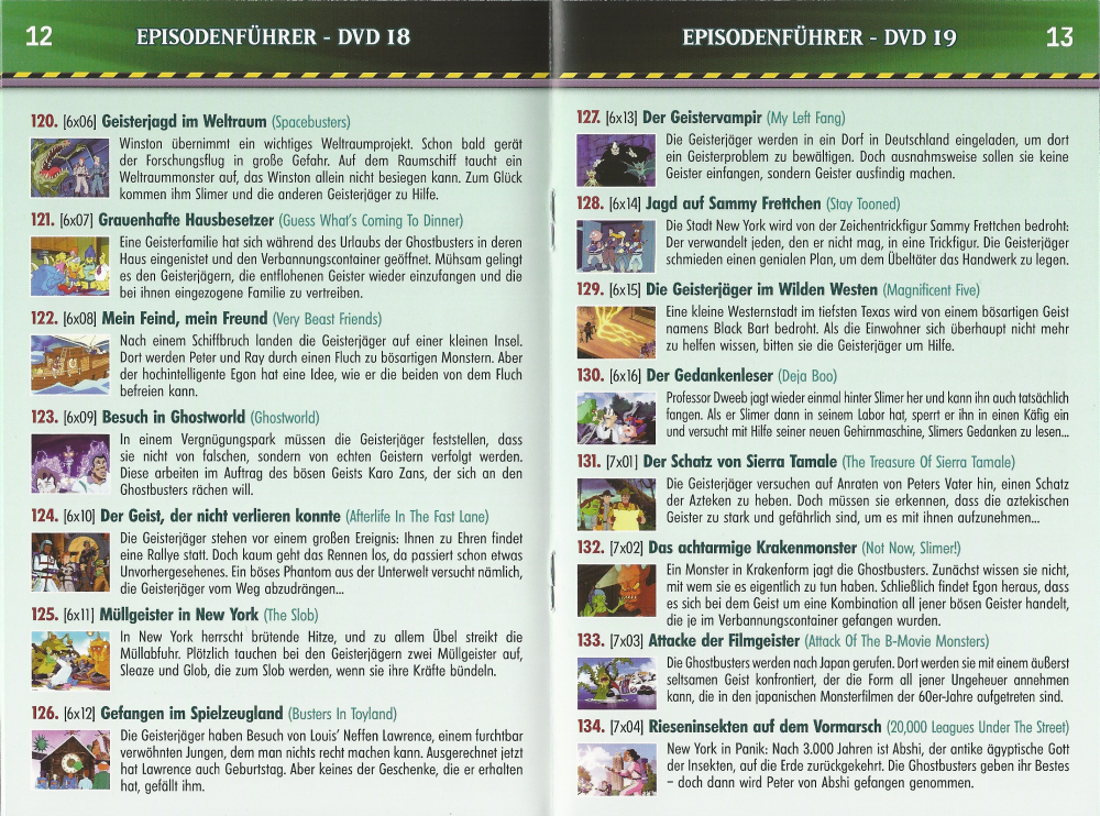 Die 13 Folgen befinden sich als Bonusmaterial auf 2 DVDs der Veröffentlichung "The Real Ghostbusters - Box 2". Scanavo Case im Schuber. FSK-Aufkleber auf dem Schuber, mit Wendecover.