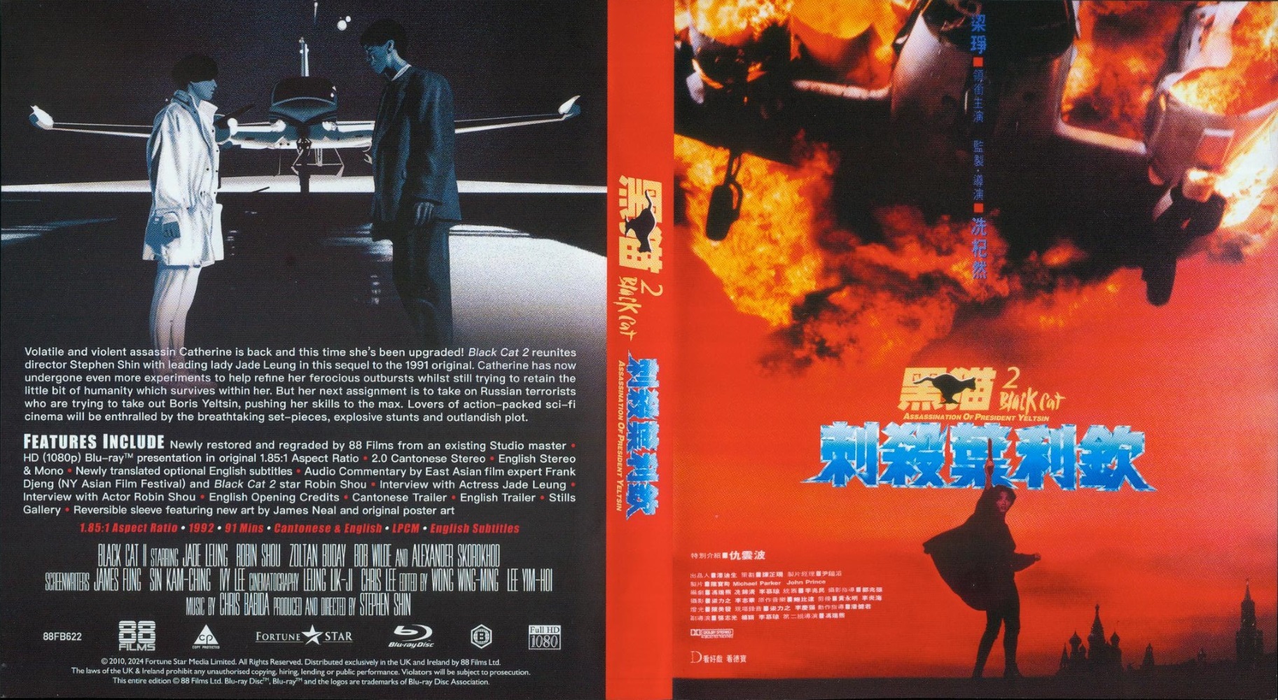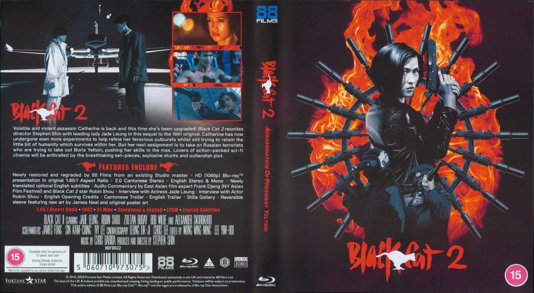 Volatile and violent assassin Catherine is back and this time she’s been upgraded! Black Cat II reunites director Stephen Shin with leading lady Jade Leung in this sequel to the 1991 original. Catherine has now undergone even more experiments to help refine her ferocious outbursts whilst still trying to retain the little bit of humanity which survives within her. But her next assignment is to take on Russian terrorists who are trying to take out Boris Yeltsin, pushing her skills to the max. Lovers of action-packed sci-fi cinema will be enthralled by the breathtaking set-pieces, explosive stunts and outlandish plot.