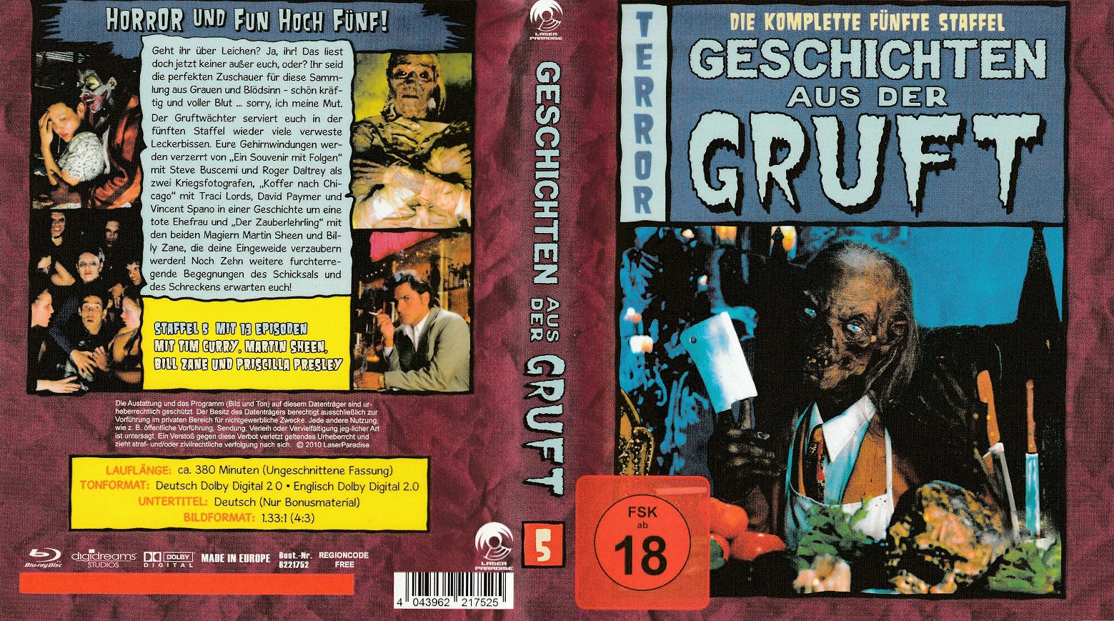 Die Laufzeitangabe von 380 Minuten ist falsch. Die Disc startet mit einem Copyright-Hinweis aber ohne Claims oder FSK-Hinweisen. Auf dem Cover prangert die FSK-Freigabe ab 18, obwohl meines Wissens die Folgen nicht neu geprüft wurden. Ich gebe daher "ungeprüft" an.