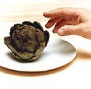 ... Teller liegenden Artischocke. Die Artischocke, mit einer verführerischen weiblichen Stimme ausgestattet, gerät in Erregung, als die Hand langsam die äußeren Blätter entfernt.